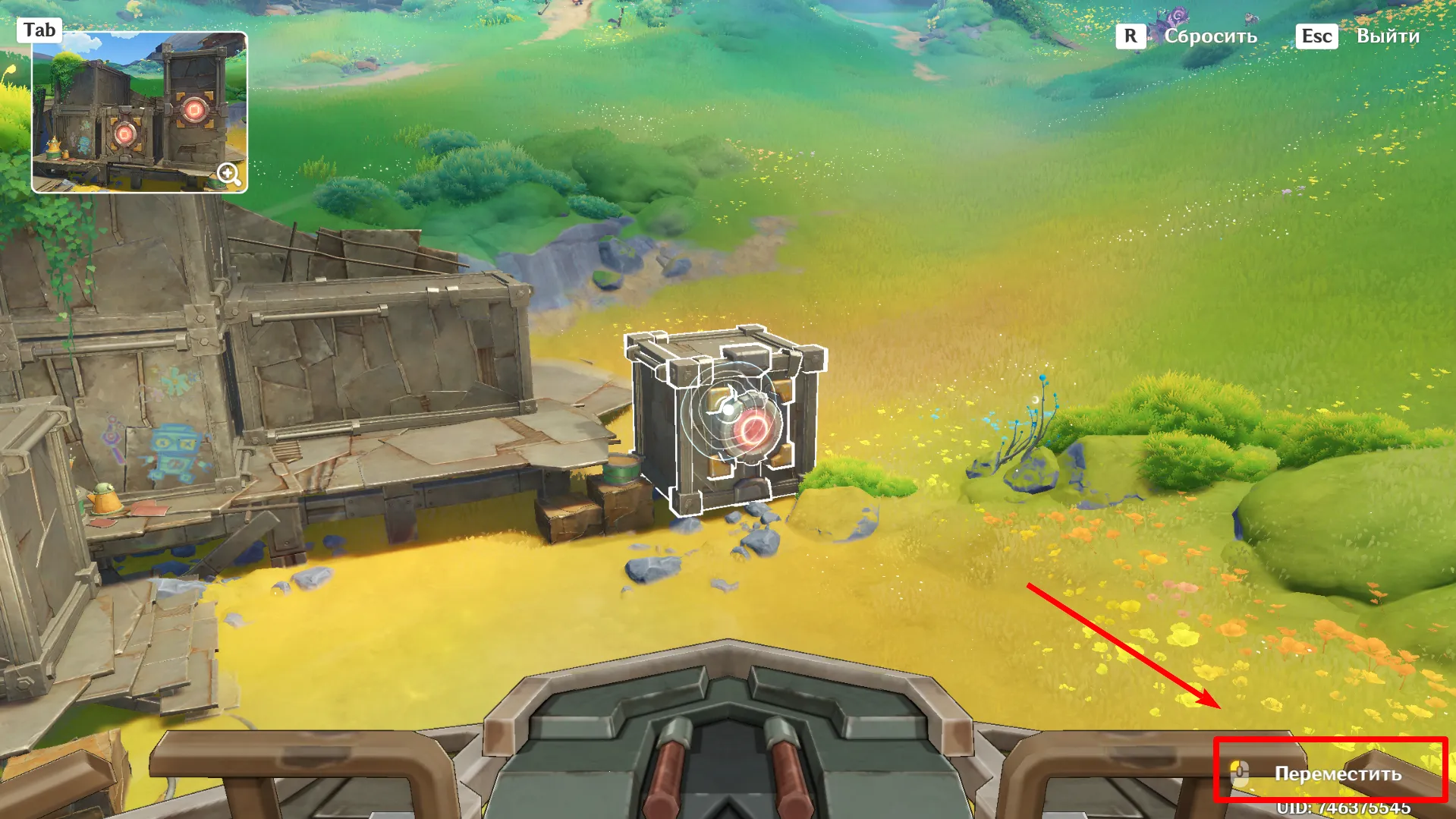 - Взять контейнер — навести курсор на предмет и щёлкнуть ЛКМ (на ПК).