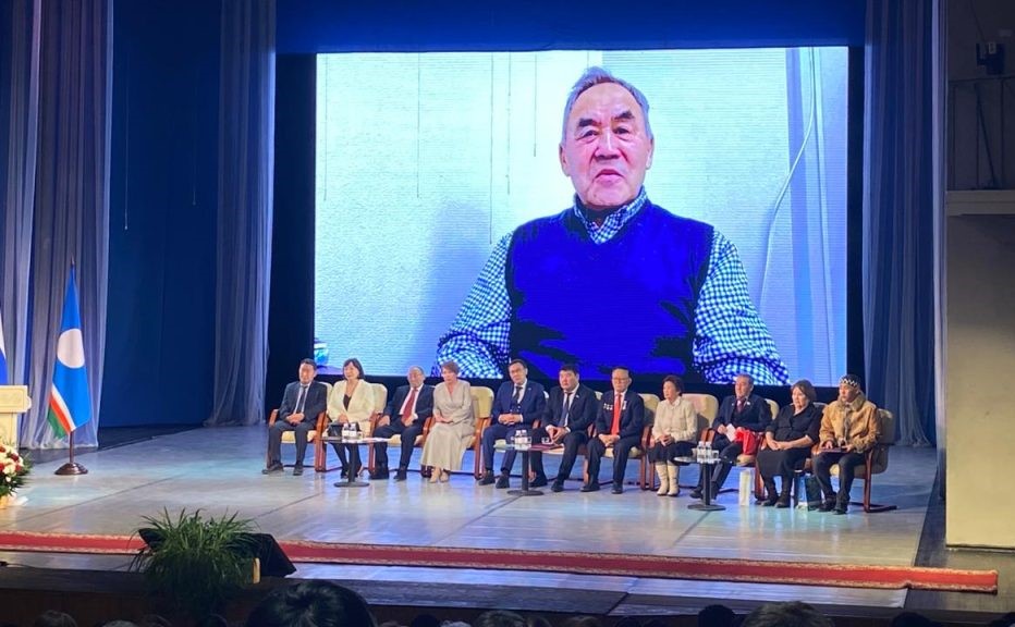 Поздравления звучали и с экрана. Поздравляет Сергей Харючи, третий президент Всероссийской ассоциации коренных малочисленных народов, председатель Ассоциации “Оленеводы мира”.