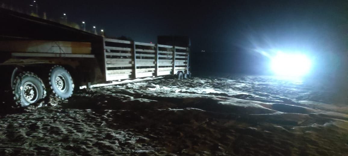 Пожарной службой был выделен груженый автомобиль «Урал», при помощи которого удалось вытащить КамАЗ. Благодаря слаженным действиям, операция проведена успешно, скот доставлен в место назначения.