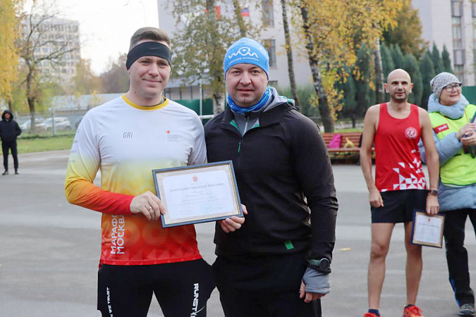 Он пробежал дистанцию 5 км вместе с участниками, после чего вручил благодарности регионального министерства спорта команде «Тульский марафон».