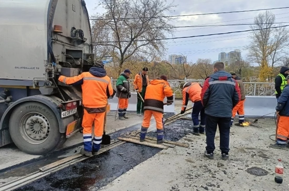 В настоящее время доставленный и термос-миксере асфальтобетон укладывают на примыкании в последнему деформационному шву на русловой части переправы. Кроме того, на участке моста со стороны университета завершается покраска блоков, отделяющих проезжую часть от пешеходных и трамвайных путей.