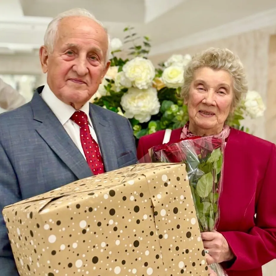 Начальник главного управления ЗАГС Елена Сорокина наградила юбиляров благодарственными письмами и ценными подарками.