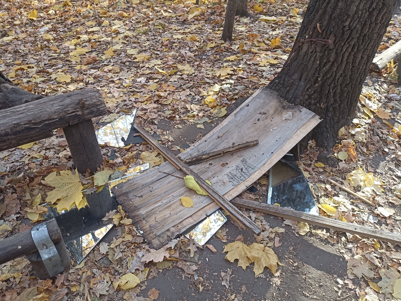При очередном ежедневном обходе сотрудники парка Прибрежный столкнулись с неприятностью: снова недобросовестные гости оставили следы своего пребывания в виде актов вандализма — разбитое зеркало на спортивной площадке, оборванные провода и выбитые окна метеора.