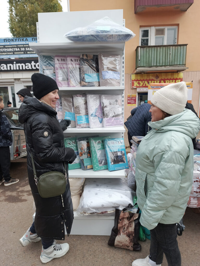 – Мы специально подготовили швейные изделия, – рассказала директор Ольга Алькина.- Земляки охотно приобретают постельные комплекты, полотенца, вот уже не осталось одеял и подушек – готовятся к зиме!