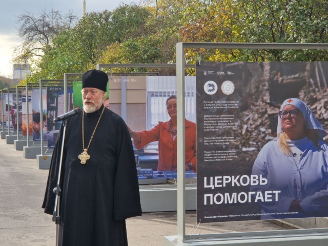 18 октября в Москве в Парке Горького состоялось открытие фотовыставки «Церковь помогает», посвященной помощи церковных добровольцев пострадавшим мирным жителям в зоне конфликта. На открытии выставки присутствовали генеральный директор «Русской Медиагруппы» Любовь Маляревская, директор Центра исследований гражданского общества и некоммерческого сектора Национального исследовательского университета «Высшая школа экономики» Ирина Мерсиянова, руководитель редакционно-издательского отдела Института этнологии и антропологии РАН Тамара Царева, сотрудники Патриаршей гуманитарной миссии и Синодального отдела по благотворительности, герои фотографий и другие почетные гости. Открыл выставку председатель Синодального отдела по благотворительности и Патриаршей гуманитарной миссии протоиерей Михаил Потокин.