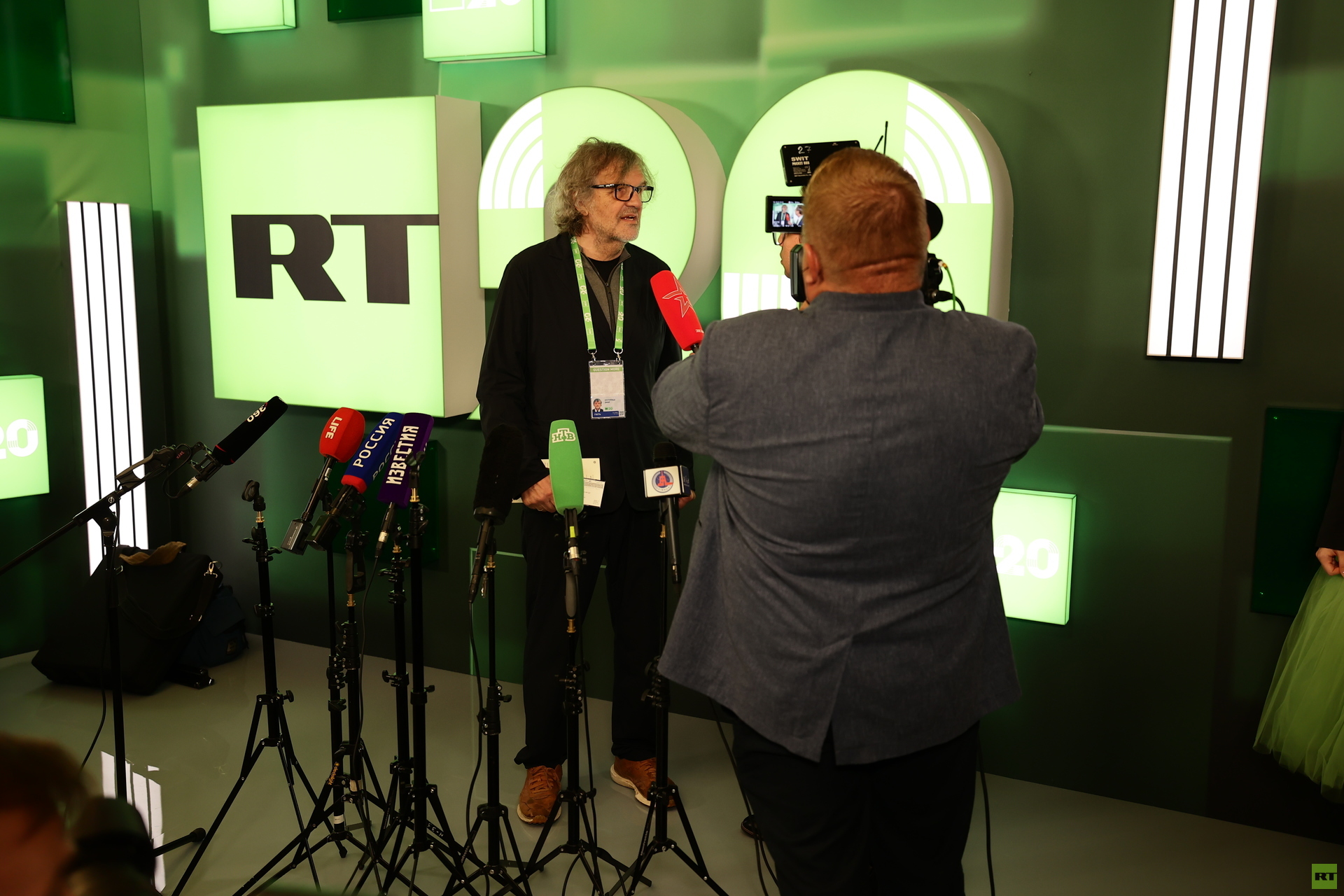 17 октября в Большом театре RT отметил своё 20-летие. Поздравить международный телеканал приехал лично президент страны Владимир Путин, который заявил, что за это время RT прошёл путь от идеи до глобального бренда. На праздновании также присутствовали участники СВО, уполномоченный по правам человека в РФ Татьяна Москалькова, глава ДНР Денис Пушилин, режиссёр Эмир Кустурица, экс-офицер разведки США Скотт Риттер, экс-министр иностранных дел Австрии Карин Кнайсль, отец Илона Маска Эррол Маск, бывший президент Всероссийской федерации художественной гимнастики Ирина Винер. Официальный представитель МИД России Мария Захарова подарила RT огромный бело-розовый букет, бывший президент Эквадора Рафаэль Корреа спел с делегациями из Кубы, Венесуэлы, Никарагуа и сотрудниками RT, а актёр Дмитрий Дюжев эмоционально обнял Скутера — героя видео RT с трофейным БТР М113.