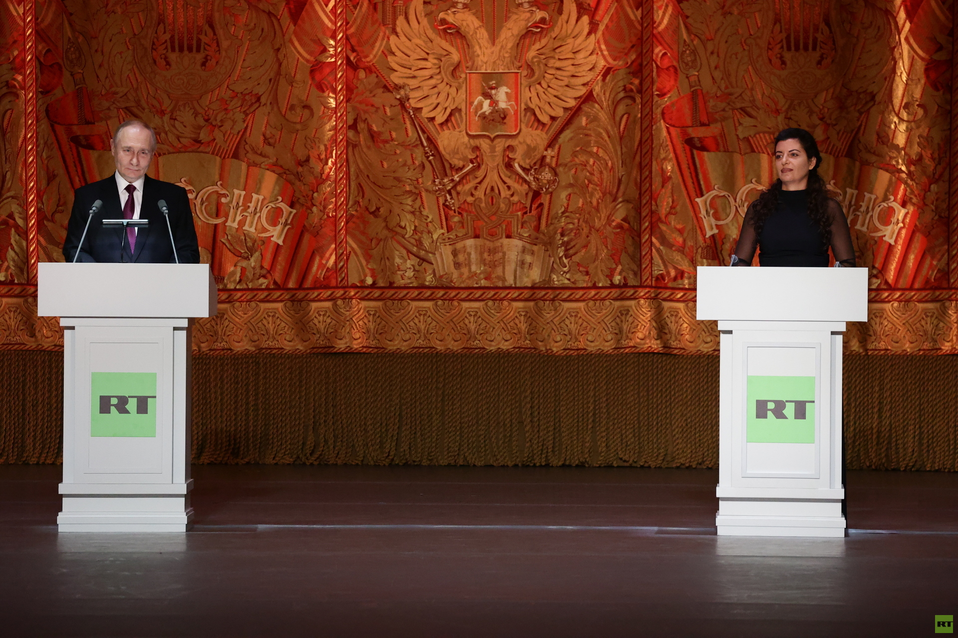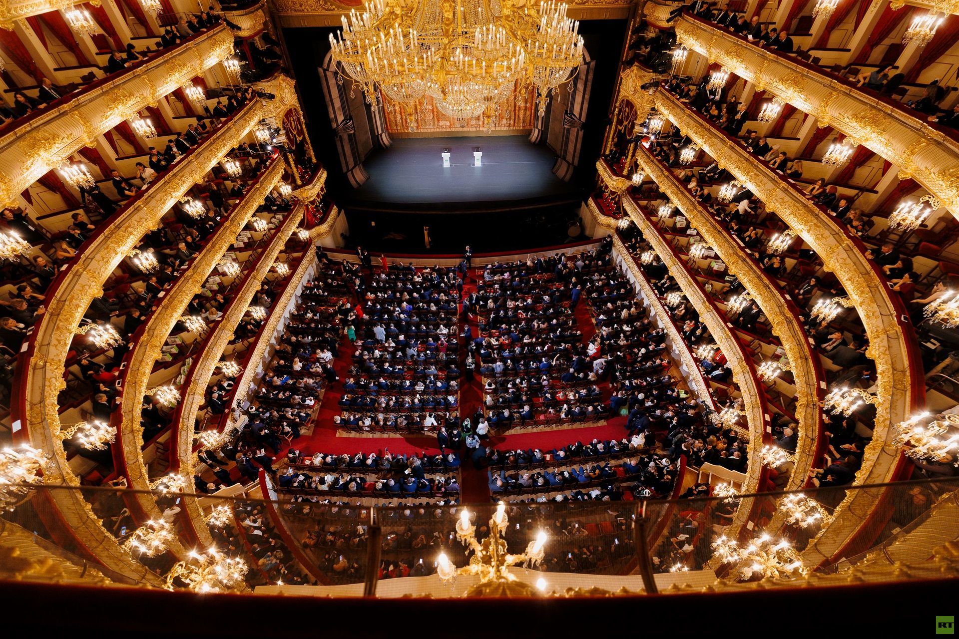 В этот вечер Владимир Путин обратился к сотрудникам RT с исторической сцены Большого театра.