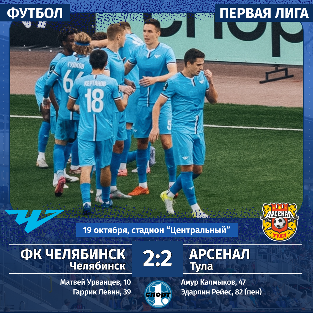 Футбол. Сезон-2025/2026. Первая лига. 19 октября. ФК «Челябинск» — «Арсенал» (Тула) — 2:2.