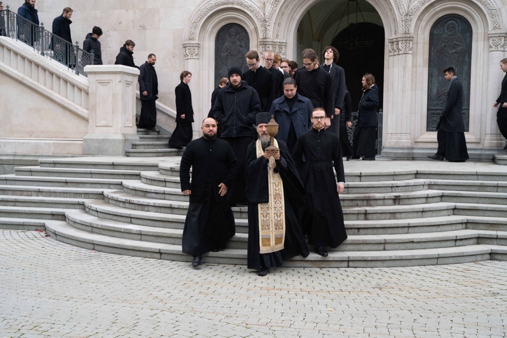 По окончании Божественной литургии насельники монастыря и студенты Академии совершили чин о панагии.