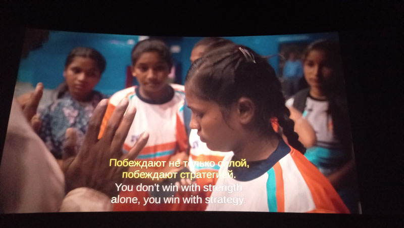 Второй индийский конкурсный фильм назывался «Бали». Эта короткая (25’) дебютная лента молодого режиссера из Мумбаи Амоли Биревар. Фильм посвящен жизни выпускниц деревенской школы, которые находятся на важном этапе своего жизненного пути и хотят сами решать свою судьбу, хотя местные традиции предписывают им поскорее выйти замуж. Одна из девушек по прозвищу Бали, что на местном наречии означает «сила», явно обладает лидерскими задатками и, вопреки воле своего деда, главы семьи, хочет работать в полиции. Для этого надо, как минимум, иметь сертификат об успехах в спортивных состязаниях. Бали – капитан школьной команды «каббади», традиционной индийской игры, цель в которой – ворваться на поле противника и любым способом дотронуться до наибольшего числа игроков чужой команды, а затем вырваться из цепких рук соперниц, чтобы вернуться на свое поле, иначе выбываешь из игры. Турнир окружного уровня для Бали становится шансом не проиграть эту жизнь. Фильм удостоился «специального упоминания жюри».