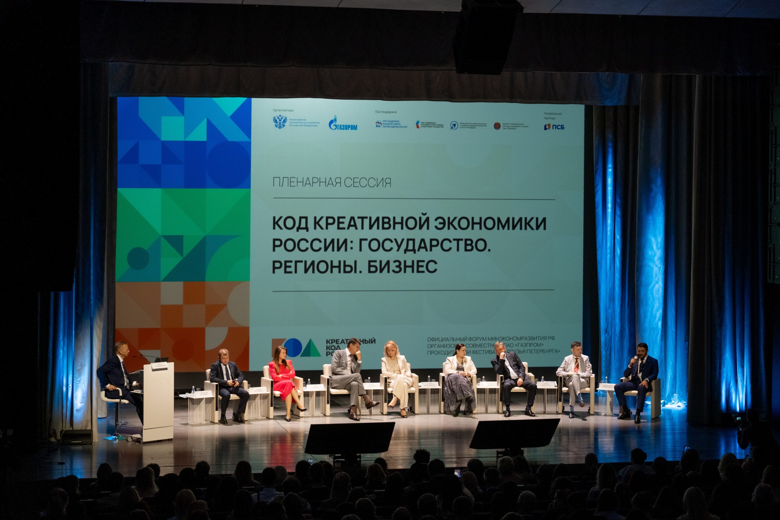 Форум по развитию креативной экономики «Креативный код. Россия» организован Минэкономразвития России и ПАО «Газпром» при поддержке Президентского фонда культурных инициатив. Форум проходит в дни ежегодного фестиваля ПАО «Газпром» «Друзья Петербурга».