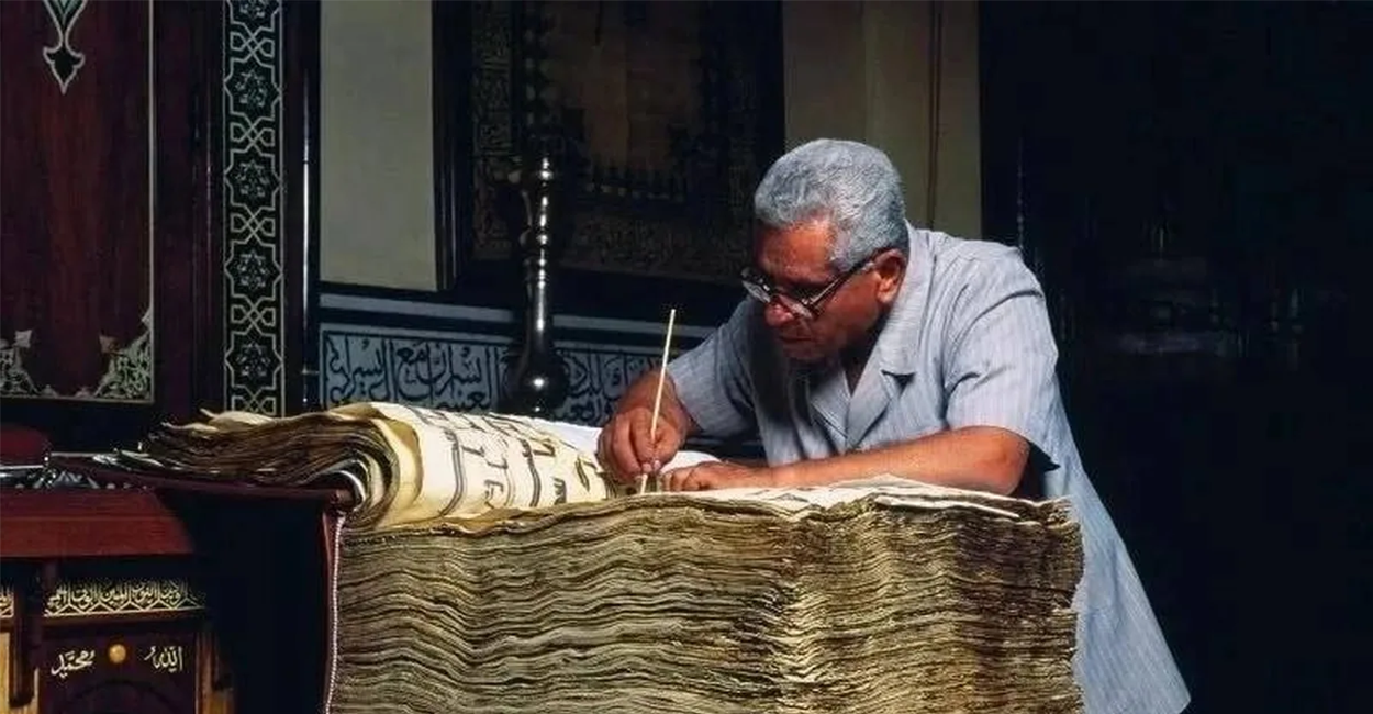 Копия Корана, приписываемая халифу Усману, хранящаяся в Мешхеде Хусейне в Каире (до 2006 года), является единственной монументальной рукописью, сохранившей почти полный текст Корана.