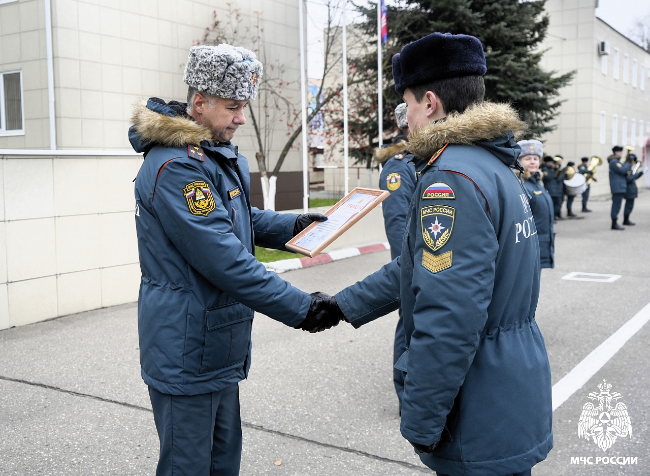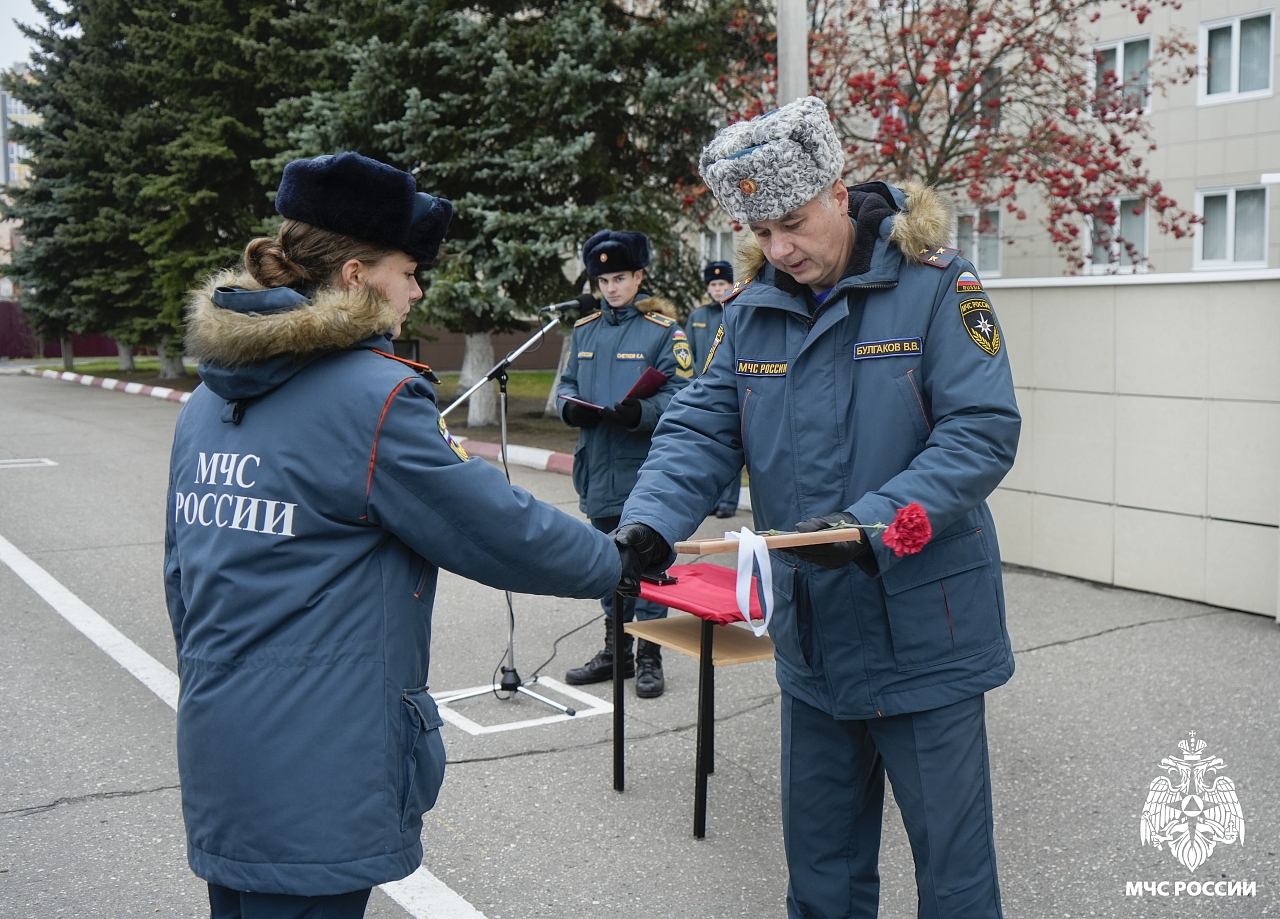 - флаг МЧС России – рядовому внутренней службы, курсанту 223 учебной группы факультета техносферной безопасности Каштанову Егору;