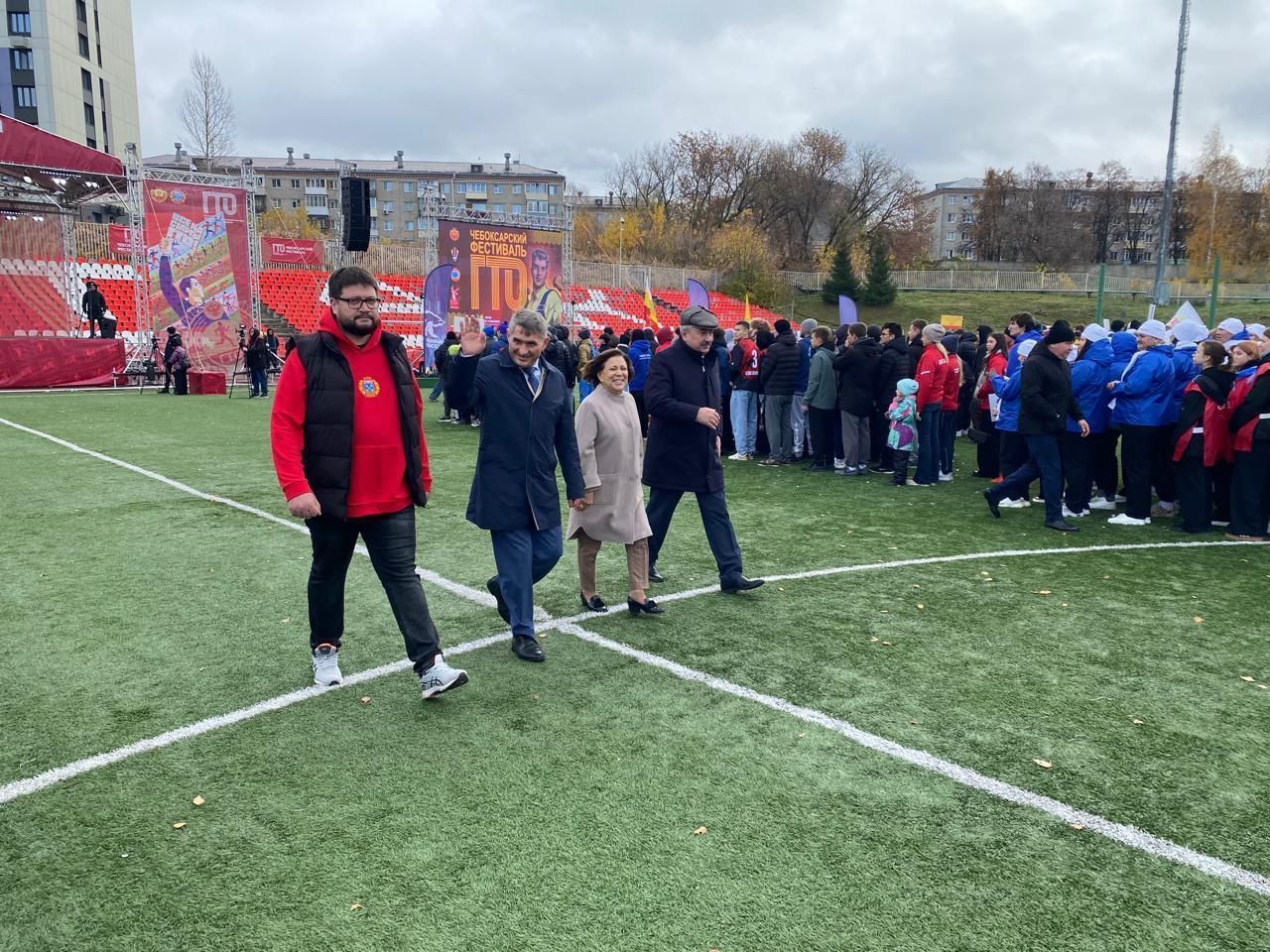 Открыли фестиваль Всероссийского физкультурно-спортивного комплекса «Готов к труду и обороне» Глава Чувашской Республики Олег Николаев и заместитель председателя Комитета Государственной Думы России по международным делам, координатор федерального проекта «Детский спорт» Ирина РоднинаОсобым гостем мероприятия стал известный российский актёр Игорь Жижикин, который поделился с участниками зарядом бодрости и позитива, проведя для них совместную утреннюю зарядку.