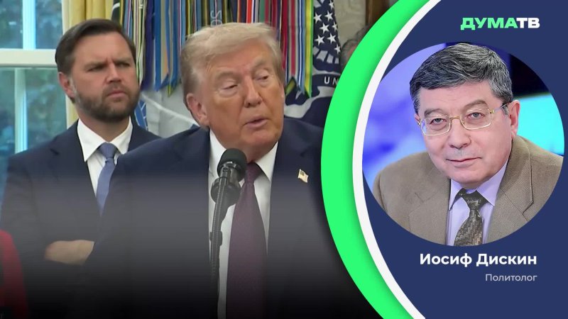 Политолог Иосиф Дискин отмечает, что военные успехи России на Донбассе усилили ее позиции. По его мнению, готовится декларация о завершении конфликта. Он считает, что Зеленский лишь делает вид, что готов к переговорам, пытаясь через Европу повлиять на Трампа и его позицию по России.