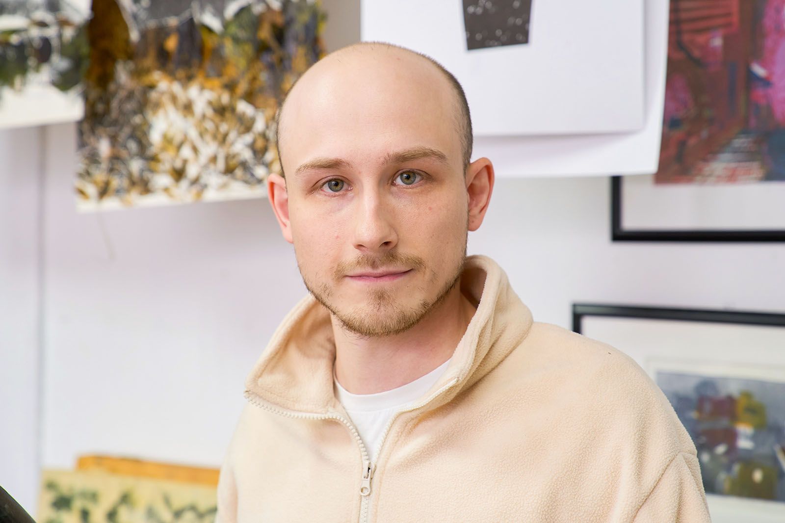 «С 2018 года мы поддерживаем художников с особенностями здоровья из социальных учреждений. Многие из них впоследствии становятся узнаваемыми авторами в мире современного искусства. Поэтому, когда меня пригласили поучаствовать в московском проекте, я сразу согласилась. На первую встречу, которая проходила в одном из филиалов центра “Гурьевский”, мы пригласили всех воспитанников, интересующихся живописью. Я раздала им краски, пастельные мелки, карандаши, маркеры и предложила что-нибудь изобразить. В процессе я обратила внимание на одну девушку — Любовь Войновскую. Она рисовала абстрактные линии и была так увлечена, что мы решили посвятить изобразительный курс направлению графики. В итоге собрали группу студентов, которые и стали участниками новой программы», — рассказывает Евгения Штиль.