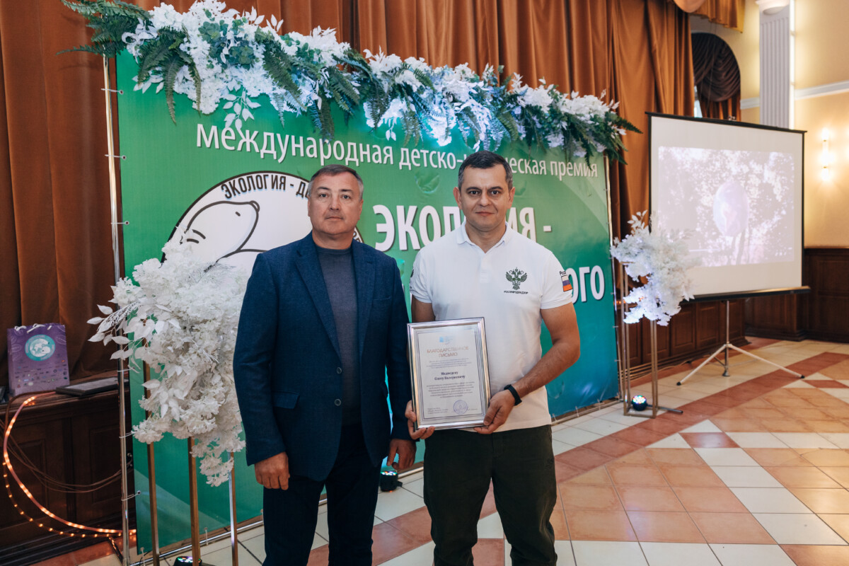 В свою очередь, Олег Медведев наградил благодарственными письмами председателя Общественной палаты области Бориса Шинчука и председателя комиссии по экологии региональной палаты Андрея Крупина«за активное участие в формировании экологической культуры подрастающего поколения и всестороннюю поддержкуМеждународной детско-юношеской премии «Экология – дело каждого».