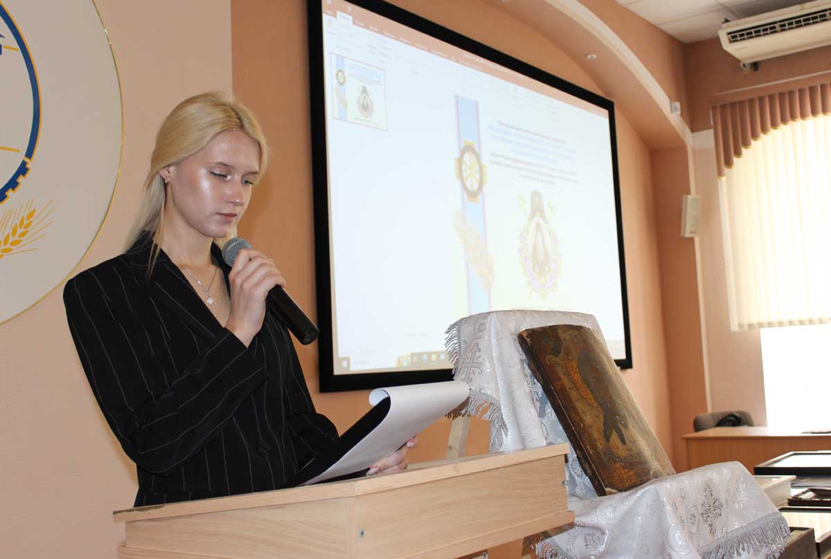 С докладами выступили журналист из Октябрьского района Наталья Ершова (Паломничество от старинного казачьего обета в Старочеркасской до современных «Дней Достоевского» в Оптиной пустыни), старший преподаватель кафедры «Православная культура и теология», древлехранитель Шахтинской епархии, заместитель председателя епархиальной комиссии по канонизации святых, действительный член ИППО Илья Шарков (Просветительская, благотворительная и социокультурная деятельность активистов губернских отделов Императорского Православного Палестинского Общества).