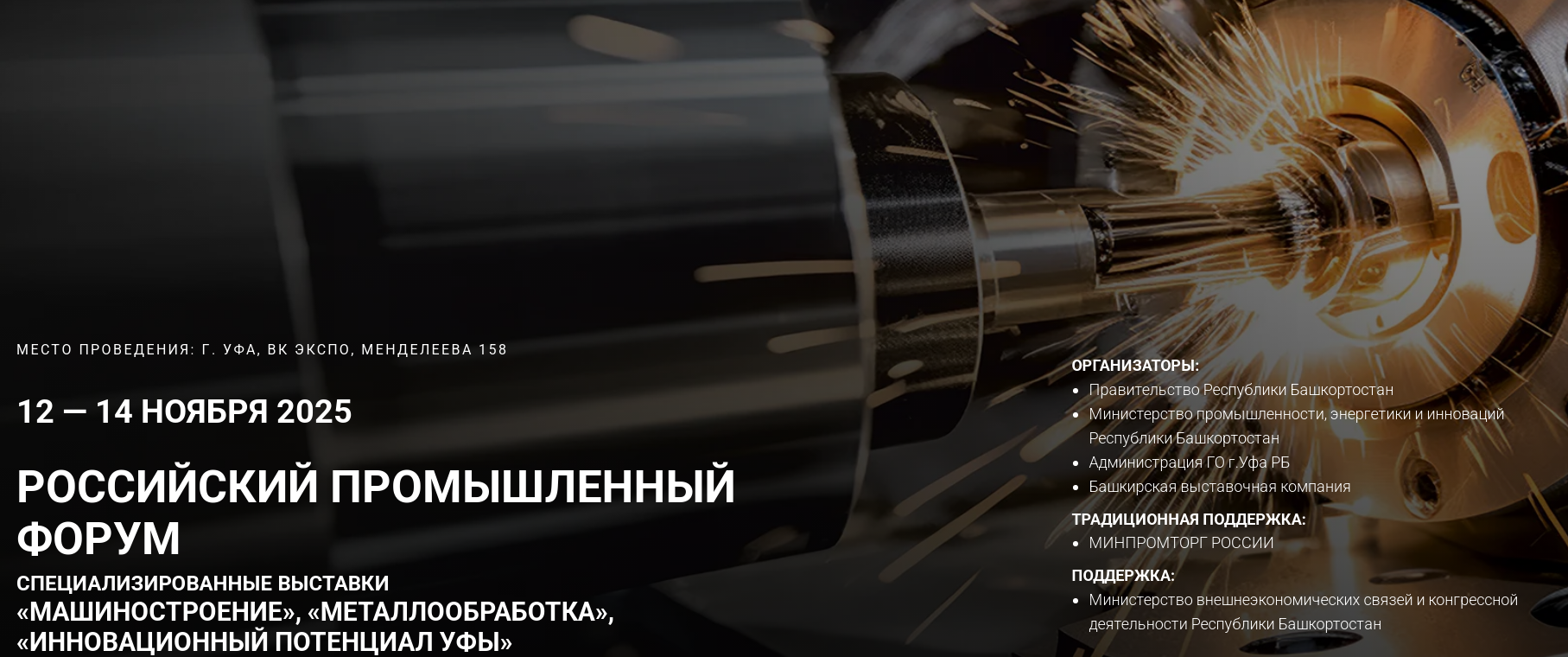 Анонс: С 12 по 14 ноября 2025 года Уфа станет главной промышленной площадкой страны. Здесь соберутся лидеры отрасли, чтобы обсудить будущее машиностроения, металлообработки и технологического суверенитета России.