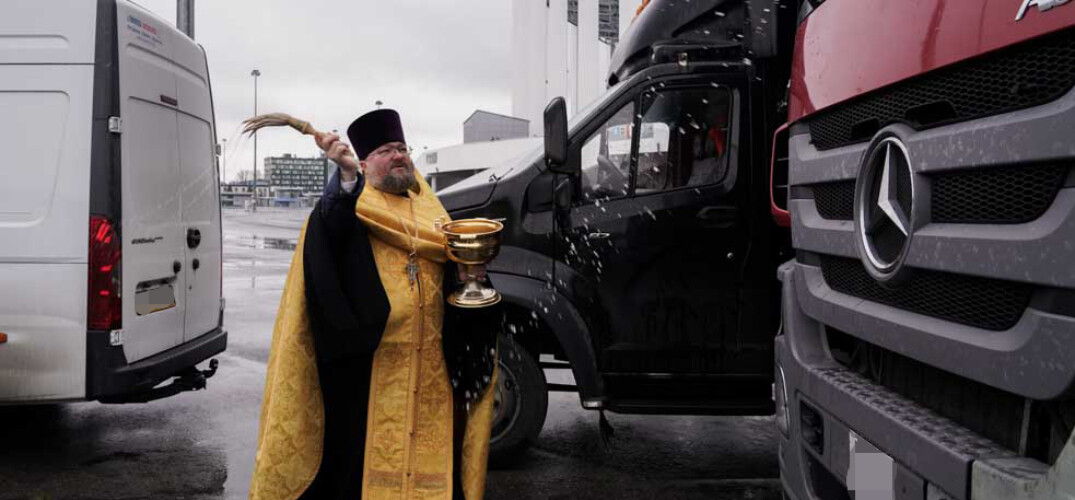 Перед отправкой груза протоиерей Александр Малафеев совершил молебен и окропил гумконвой святой водой.