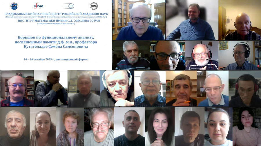 Эта встреча должна была состояться 2 октября 2025 года в честь 80-летия российского и советского математика, заслуженного ветерана Сибирского отделения Академии наук СССР, главного научного сотрудника лаборатории функционального анализа Института математики СО РАН, члена Американского и Европейского математических обществ, д.ф.-м.н., профессора С.С. Кутателадзе. Друзья, коллеги и соратники готовились к ней загодя, однако судьба распорядилась иначе... Семён Самсонович ушел из жизни 15 января текущего года. Памяти профессора коллеги посвятили Воркшоп по функциональному анализу. В программу Воркшопа вошли доклады известных российских специалистов в области функционального анализа. Работа проходила в период с 14 по 16 октября 2025 года в дистанционном формате на специализированной площадке для видеоконференций.