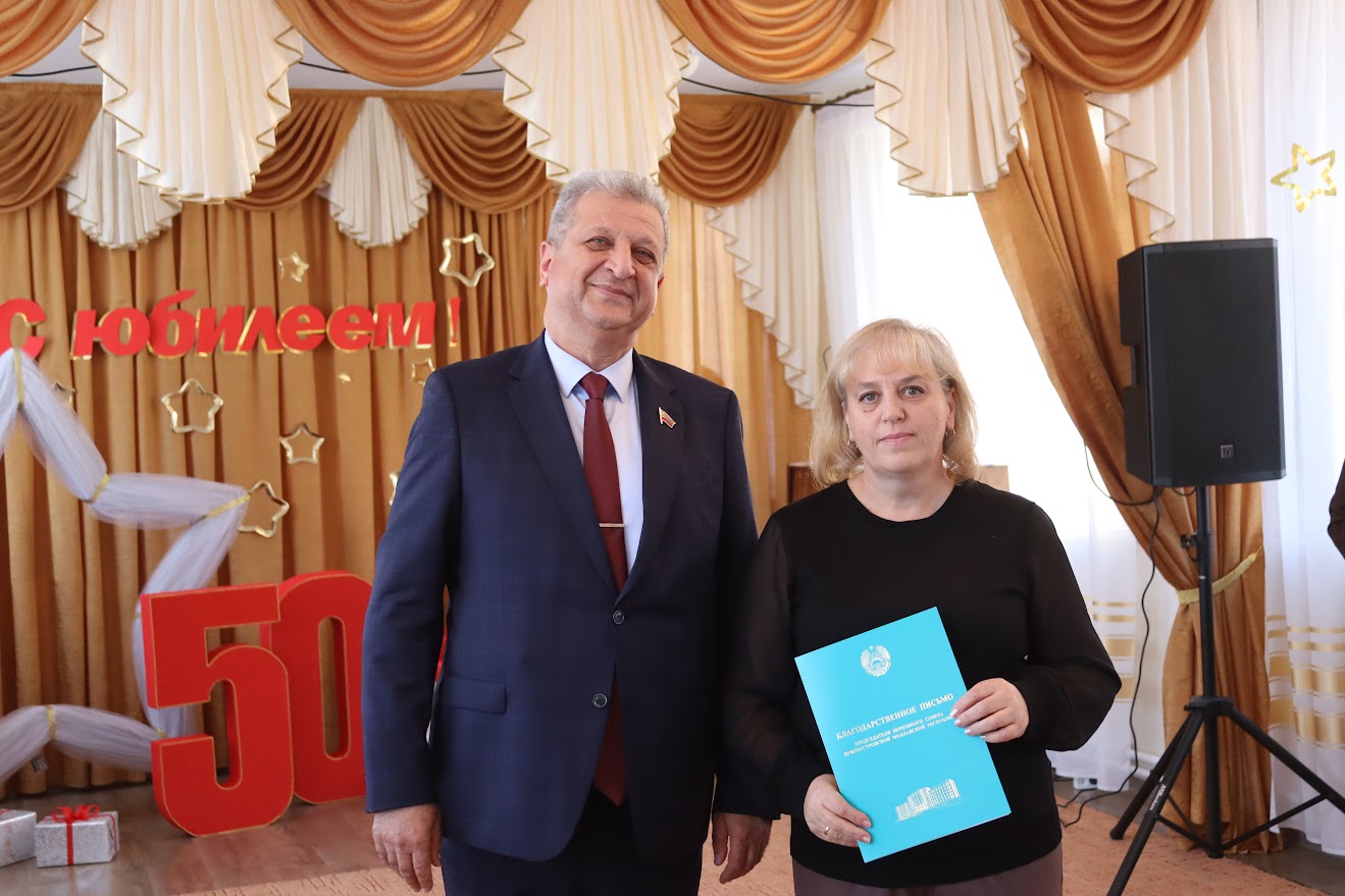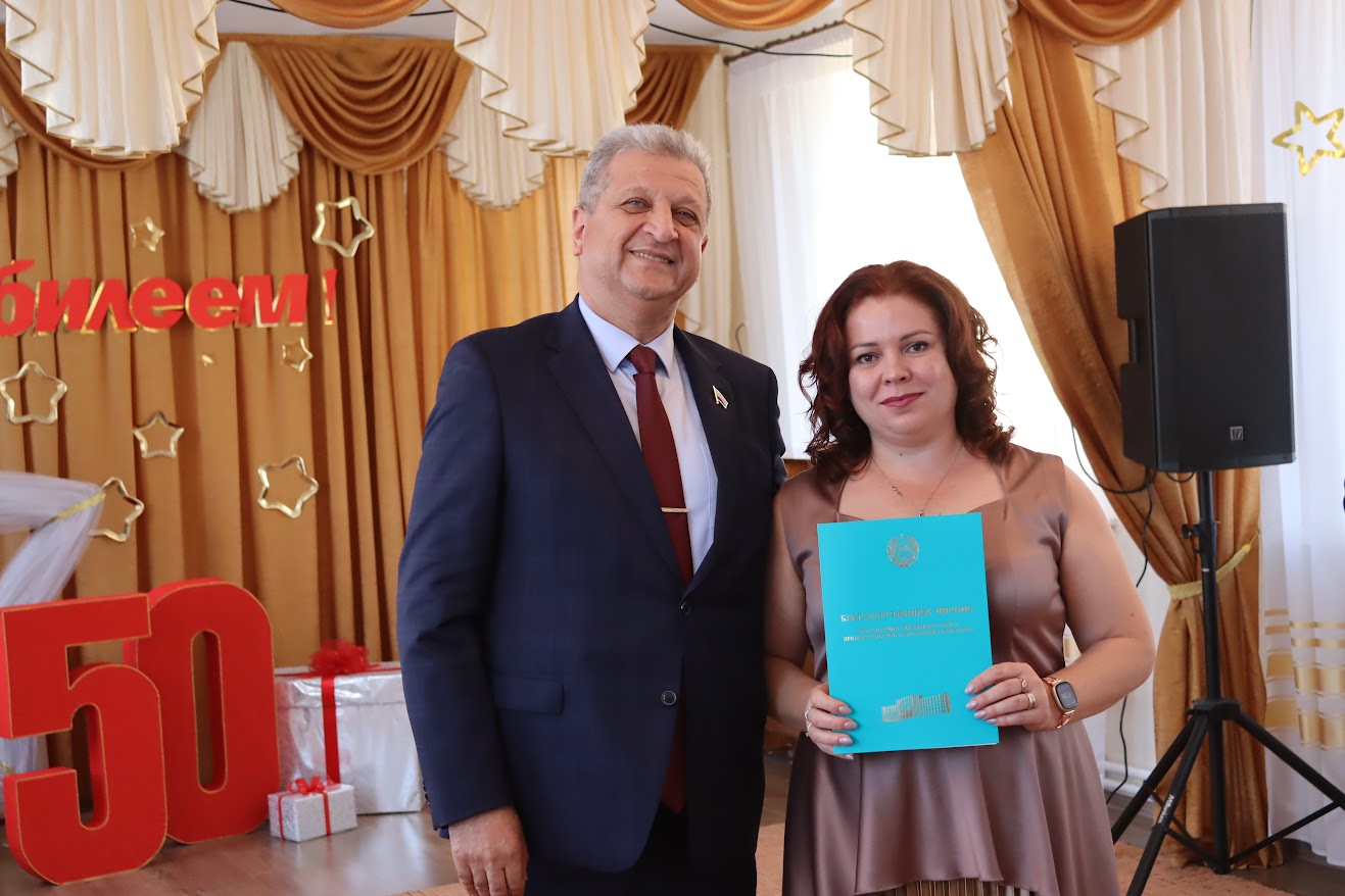 От имени Верховного Совета ПМР с полувековым юбилеем детского сада коллектив поздравил депутат Верховного Совета ПМР по избирательному округу №11 «Центральный» Борис Герман. Он отметил, что за пятьдесят лет через заботливые руки педагогов прошло огромное число детей, и каждый ребенок здесь воспитывался в тепле, заботе и любви. Большой группе воспитателей, логопедов, техническому персоналу парламентарий вручил Благодарственные письма Председателя Верховного Совета ПМР Александра Коршунова.