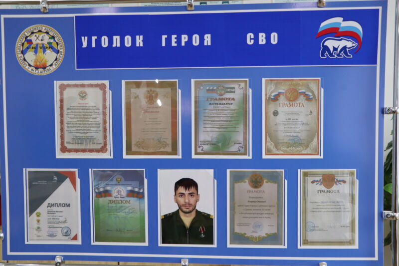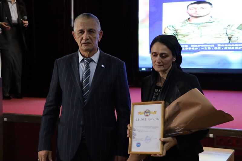 Выпускник колледжа Дзарахов Магомед Вахаевич погиб в ходе СВО при выполнении боевой задачи на окраине Каменского 15 февраля 2025 года. Он награждён орденом «Золотая звезда» и орденом «Герой СВО» (посмертно). Здесь присутствуют родственники военного и почетные гости.