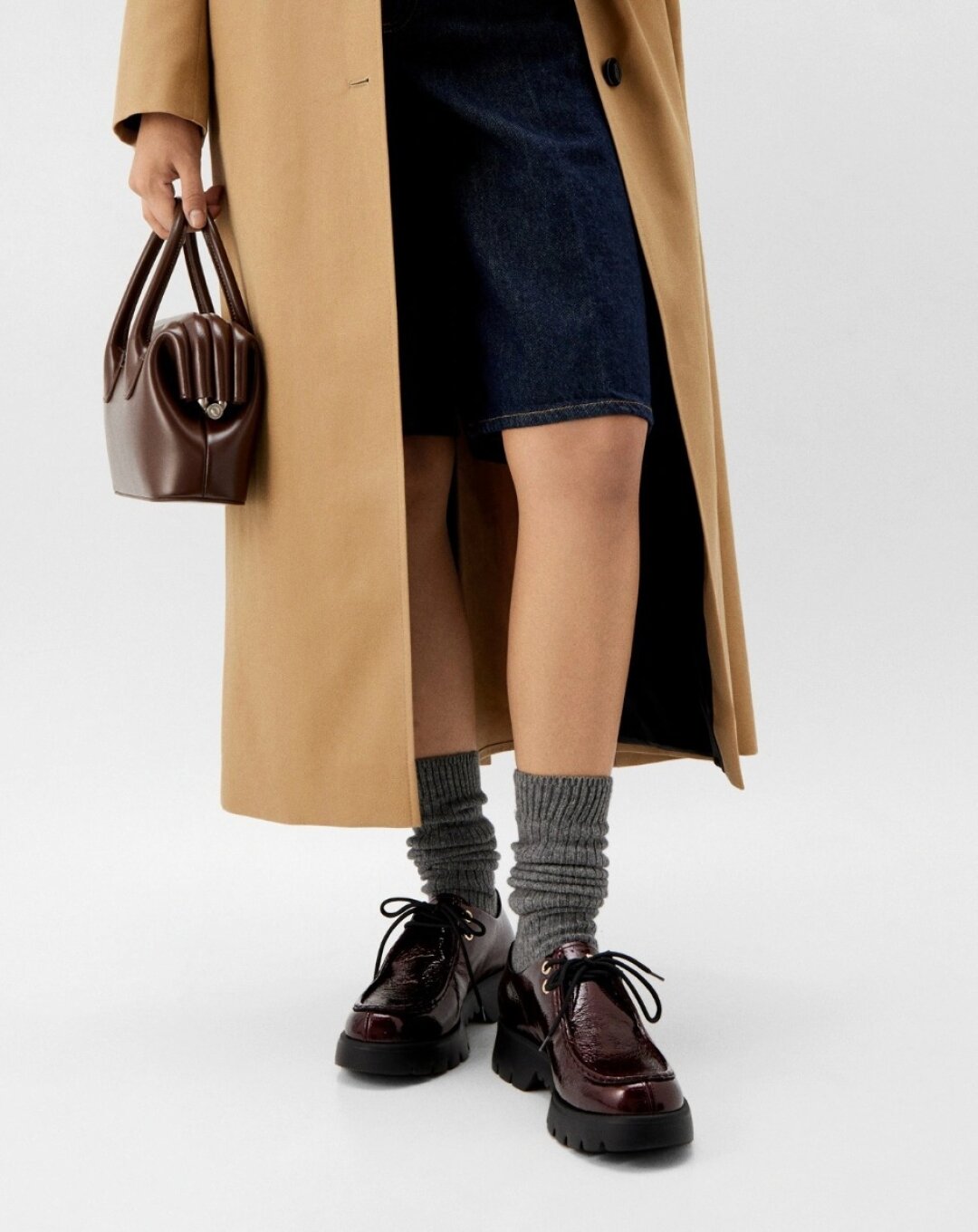Заодно с Миуччей Прада в сторону лоферов кивнули в Gucci и Bottega Veneta: за самыми модными (читай: в лакированной коже!) отправляемся в ДЛТ (там нашлась пара с крэш-эффектом Dries Van Noten!), Oskelly (в наличии коллекционный айтем Chanel с мехом внутри!) и в duet.by.me (сочинили модель анатомической формы!). Плоская подошва в Петербурге — не фэшн-деталь, а погодная необходимость (гололед скоро на всех улицах города!). По этому поводу говорим «да» лакирванным ботфортам Santoni и полусапожкам-носкам на почти невидимой подошве Graciana (важный тренд сезона!).