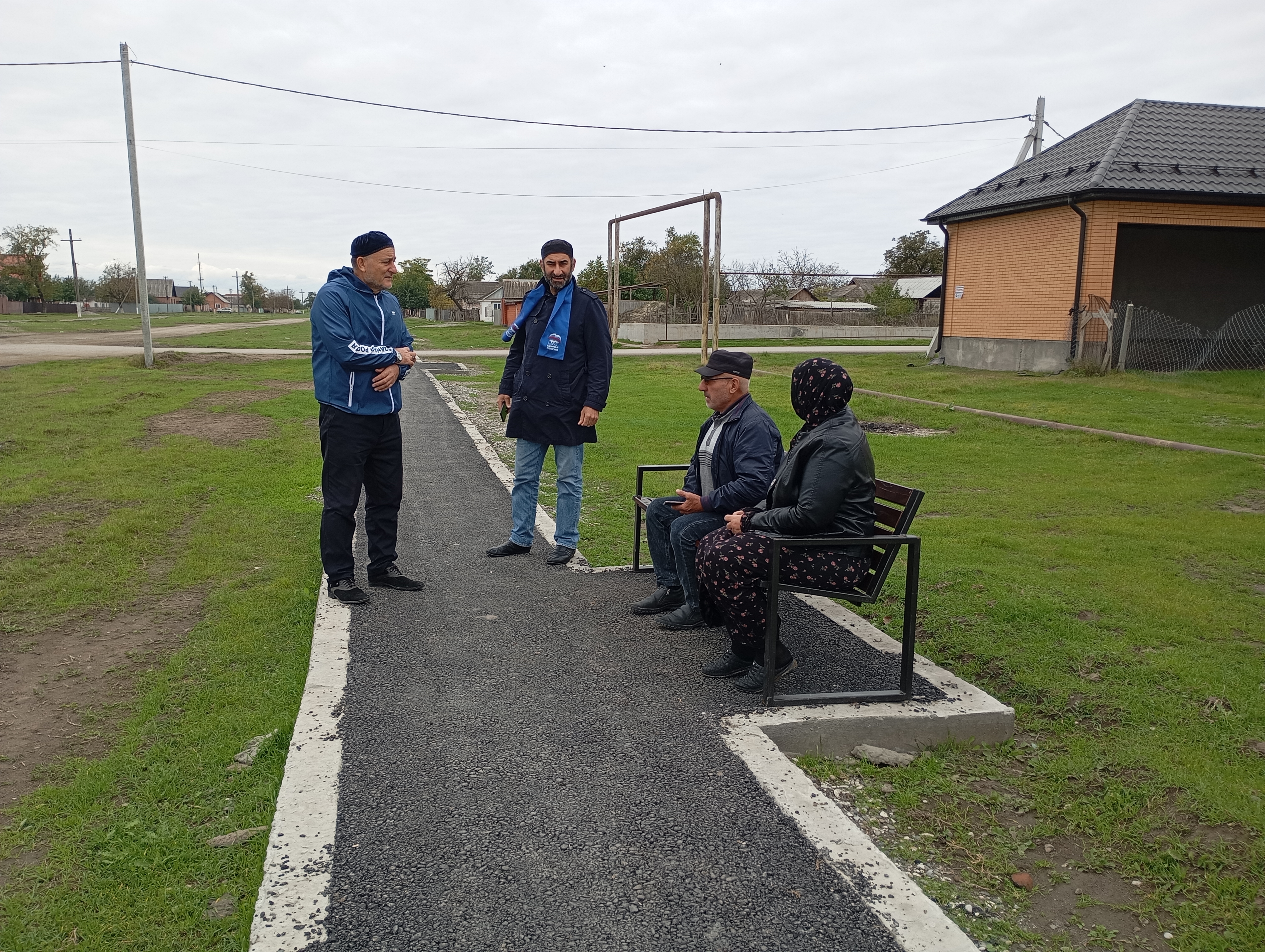 В городе Наурская председатель местного совета сторонников, глава города Абдурахим Ибаков и исполнительный секретарь местного отделения партии Абаз Муртазов оценили благоустройство территории по улице Широкой. В настоящий момент на участке оборудован тротуар протяжённостью 980 метров и установлены скамейки.