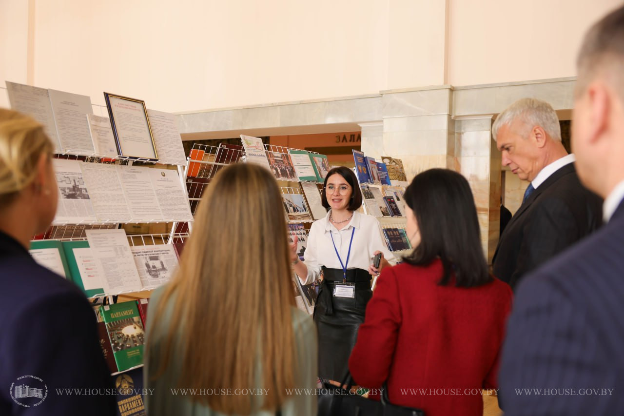 В экспозиции были представлены книги и документы, рассказывающие о становлении белорусского парламентаризма. Внимание гостей мероприятия на выставке обращено на особенности парламентаризма как основы демократического устройства современной Беларуси. Отдельное место заняло издание «Они были первыми», которое подготовлено совместно архивистами и парламентариями.