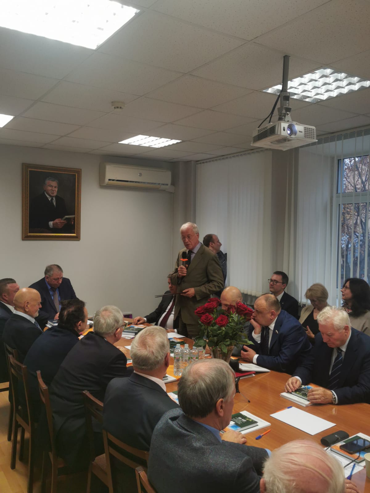 Тема заседания: 35 лет Всероссийскому институту аграрных проблем и информатики имени А.А. Никонова и актуальные направления аграрно-экономических исследований. Открыл заседание руководитель ВИАПИ имени А.А. Никонова, академик РАН А.В. Петриков.