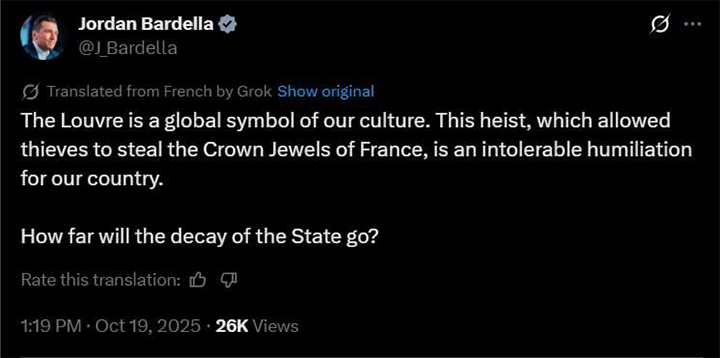 Лувр – это не просто музей, это наша душа. Если даже святая святых культуры подверглась нападению, значит, государство утратило способность защищать самое ценное.