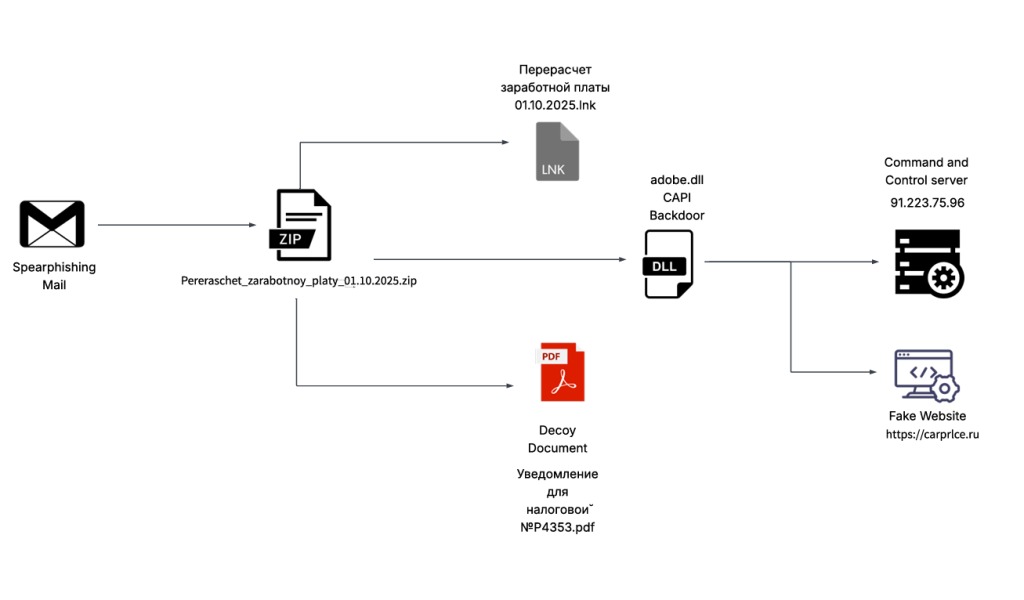 По данным специалистов, атаки начинаются с распространения фишинговых писем с вредоносным ZIP-архивом. Один из таких ZIP-артефактов был загружен на платформу VirusTotal 3 октября 2025 года.