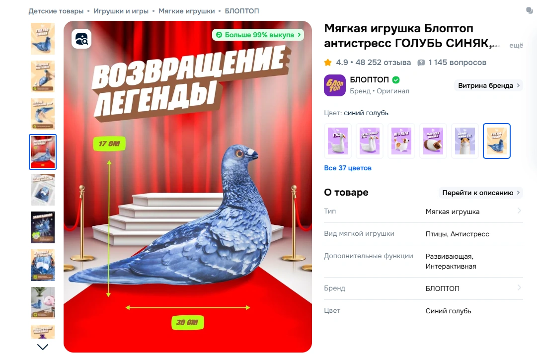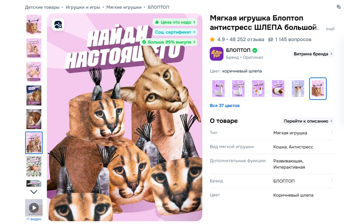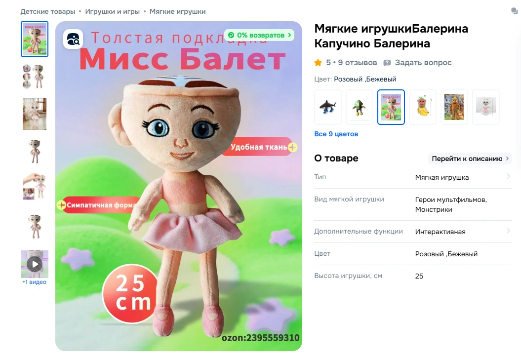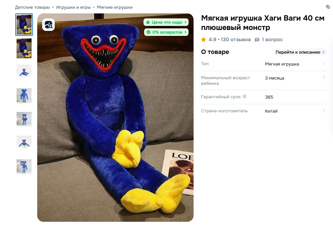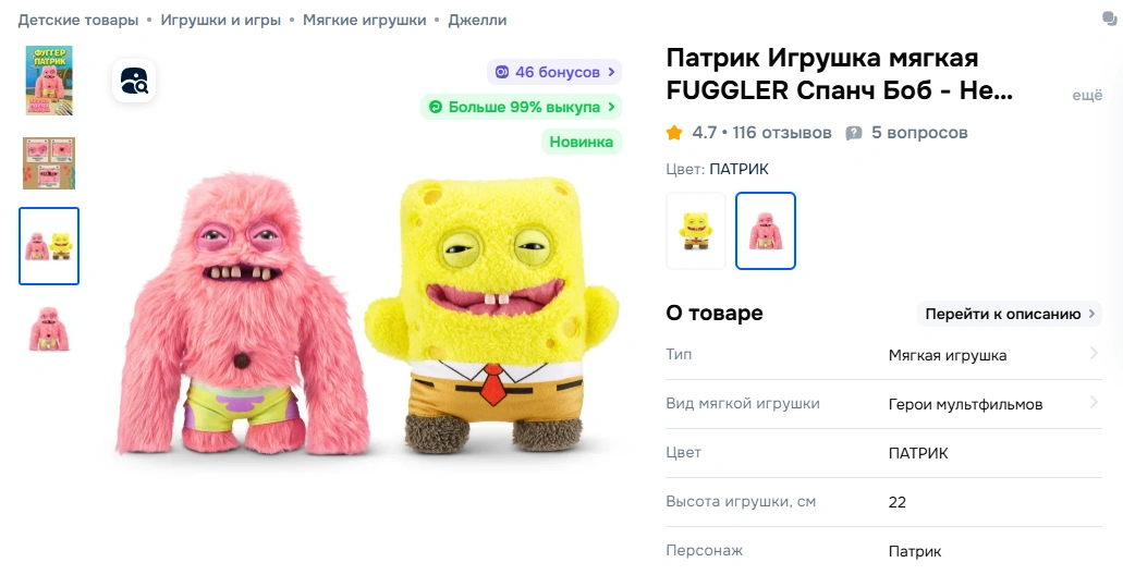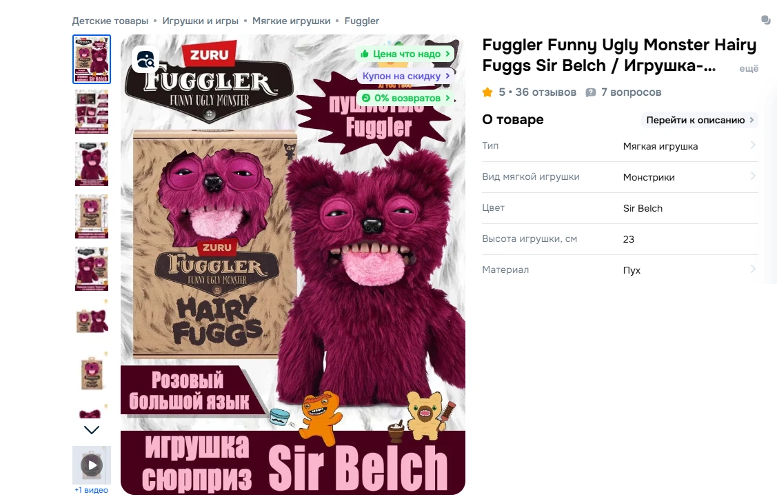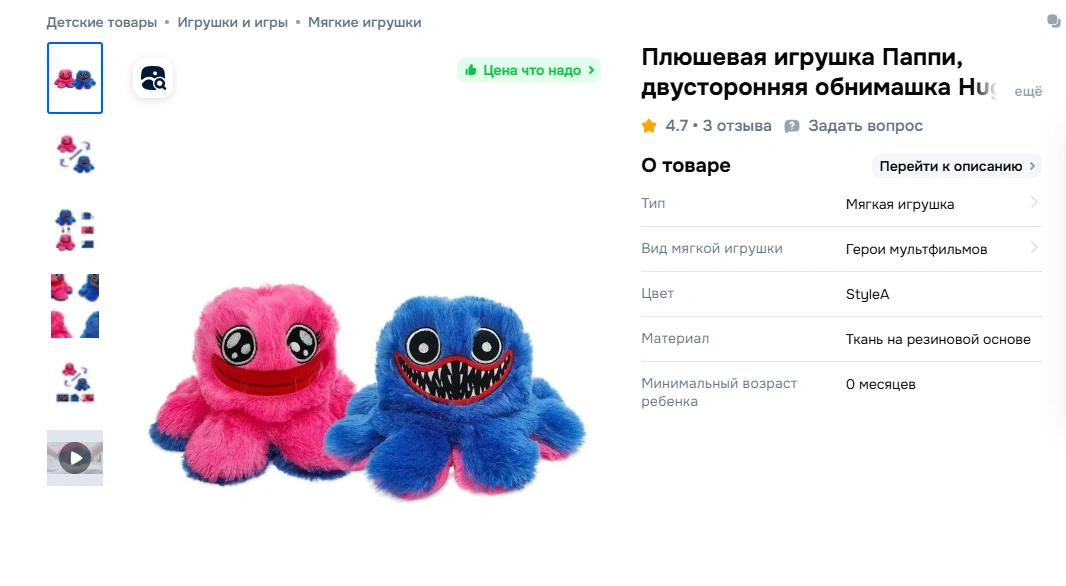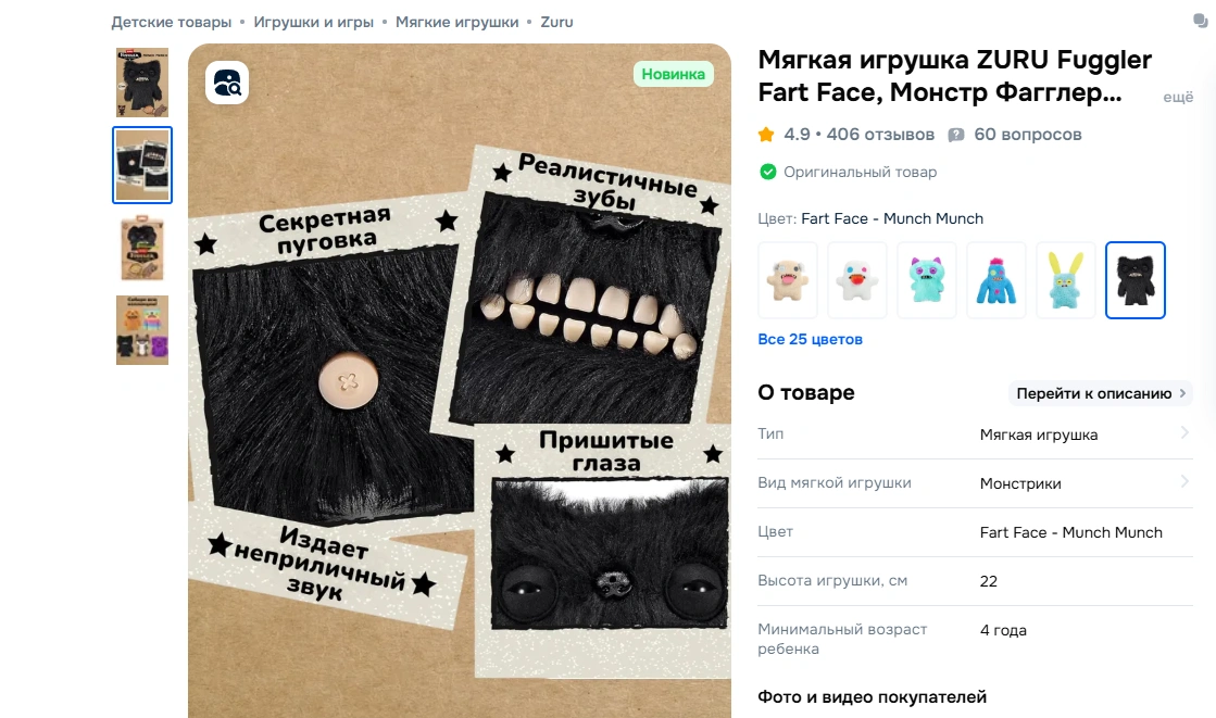 Стоимость игрушек на маркетплейсах стартует от 1000 рублей.