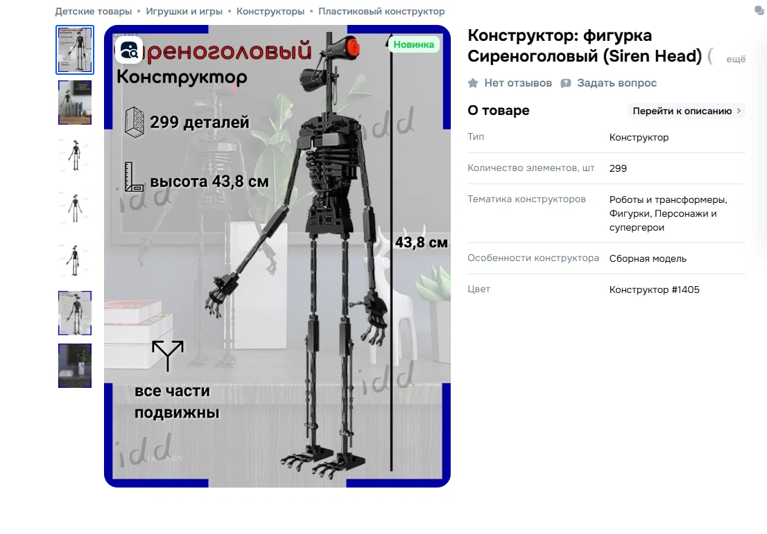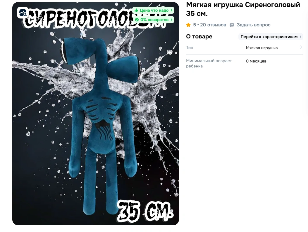 Стоимость игрушки "Сиреноголового" на маркетплейсах начинается от 150 рублей.