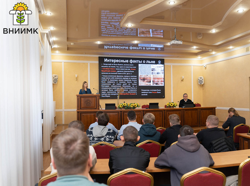 Старший научный сотрудник лаборатории агротехники, кандидат сельскохозяйственных наук Юлия Викторовна Мамырко рассказала студентам об истории масличного льна, его хозяйственном значении, новинках в селекции и о том, как его выращивать, чтобы получить максимальную прибыль. Заведующий лабораторией агрохимии, кандидат сельскохозяйственных наук Василий Леонидович Махонин прочитал лекцию о сортах сои, известных российских ученых-селекционерах и основах выращивания культуры.