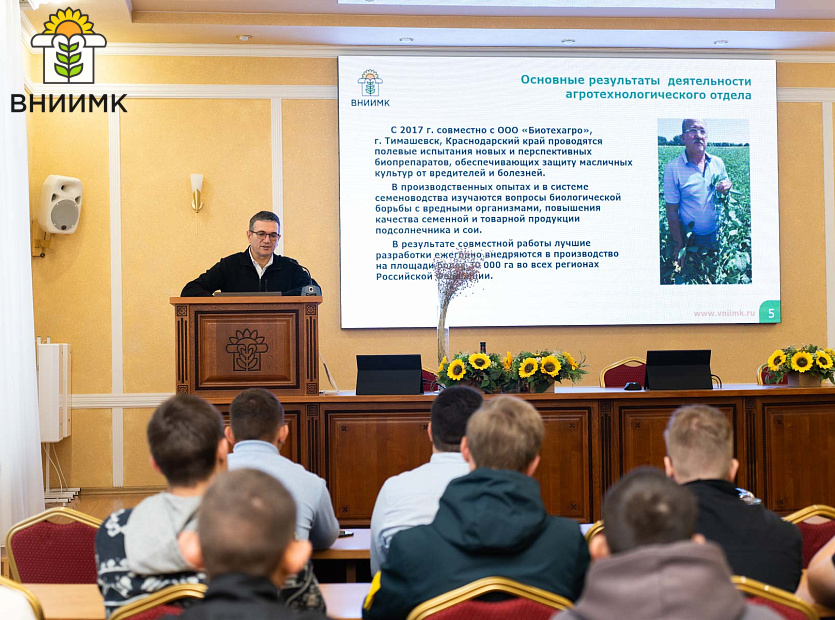 Главный эксперт сектора координации научно-исследовательских работ ВНИИМК, доктор биологических наук Николай Иванович Бочкарев пригласил студентов в музей истории центра, где собрана уникальная коллекция фотографий, рукописей, материалов, личных вещей Василия Степановича Пустовойта и ученых, внесших особый вклад в аграрную науку. На лекции у заведующего агротехнологическим отделом, кандидата сельскохозяйственных наук Александра Сергеевича Бушнева студенты узнали об особенностях технологии выращивания подсолнечника, его биологических особенностях, современных тенденциях в области селекции, направленных на решение одной из важнейших на сегодня задач по созданию сортов и гибридов, устойчивых к дефициту влаги.