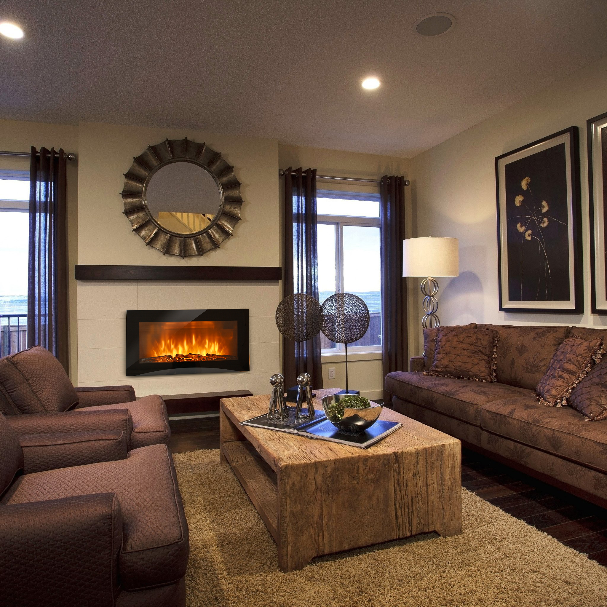 Реалистичный эффект пламени достигается благодаря использованию светодиодной технологии LED. Можно регулировать не только яркость пламени, но и «звук потрескивания дров». При необходимости эту функцию можно отключить и наслаждаться только видом огня.