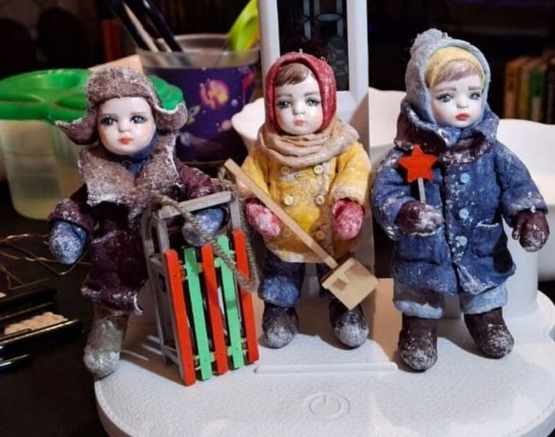 Каждая игрушка обретает свой характер и историю, напоминая о зимних дворах, новогодних открытках и елочных украшениях советской эпохи.