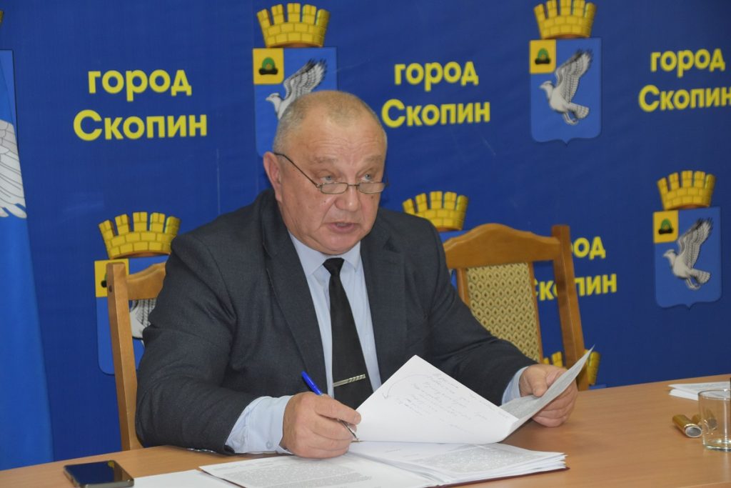 В Скопине прошло внеочередное заседание Думы Скопинского муниципального округа под председательством Юрия Гуськова. В нем участвовали руководящие сотрудники администраций Скопина и Скопинского района.