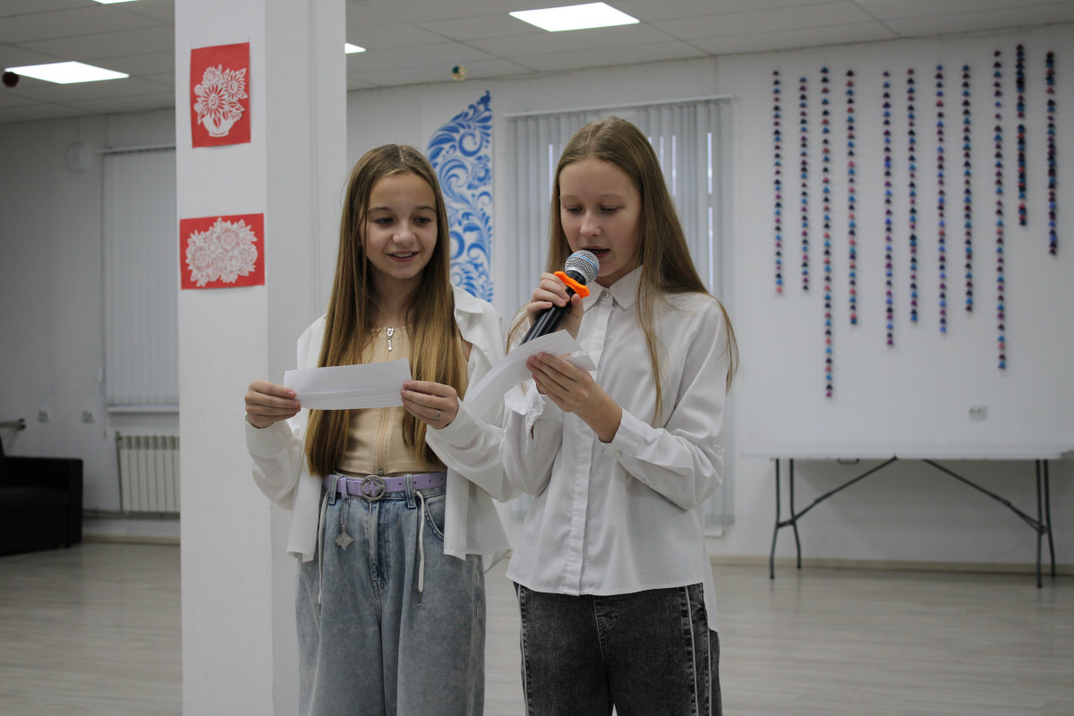 Погода была дождливая, поэтому из ребят в общественный центр пришли только Карина и Ангелина, а опоздавший Матвей присоединился к взрослым зрителям.
