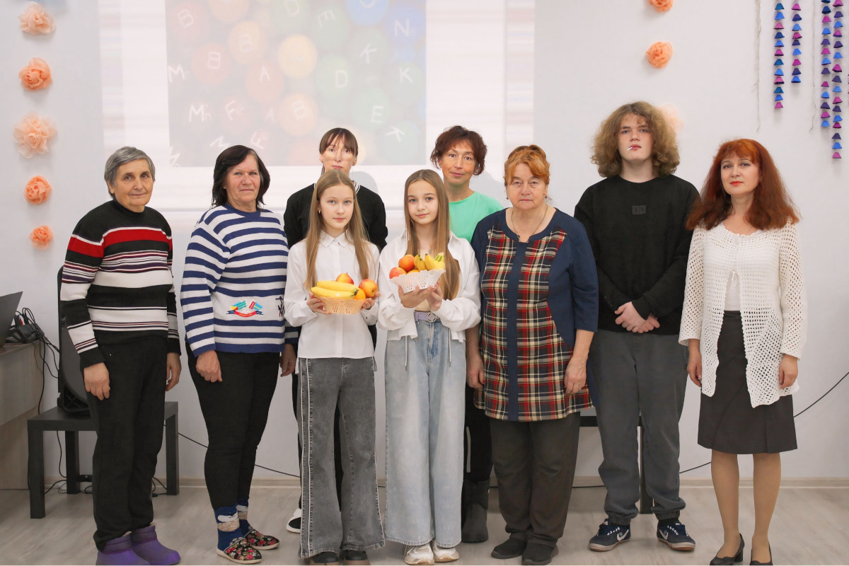 Сначала беседовали о витаминах: какими они бывают, для чего нужны, где содержатся, а затем началось путешествие. На станции «Загадочная» девочки отгадывали загадки, на «Стихотворной» нужно было выбрать стихотворение и прочитать его с выражением. Обе участницы артистичные, без них не обходится ни один концерт в Общественном центре, поэтому с заданием они справились на отлично, как и с исполнением частушек в следующем блоке.