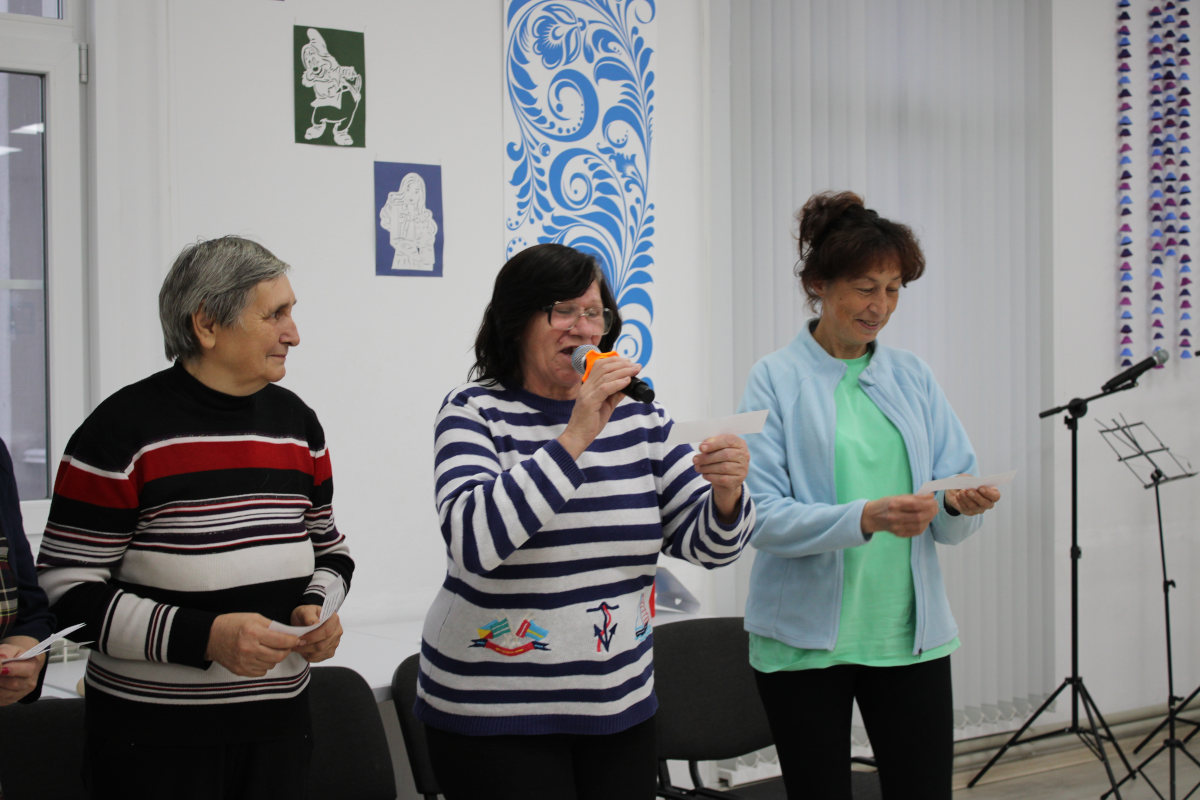 К музыкальной части со словами «А почему мы просто зрители? Мы тоже будем петь!» подключились взрослые. Задания готовили для большего числа игроков, поэтому и болельщикам достались частушки, которые они с удовольствием исполнили вместе с детьми.