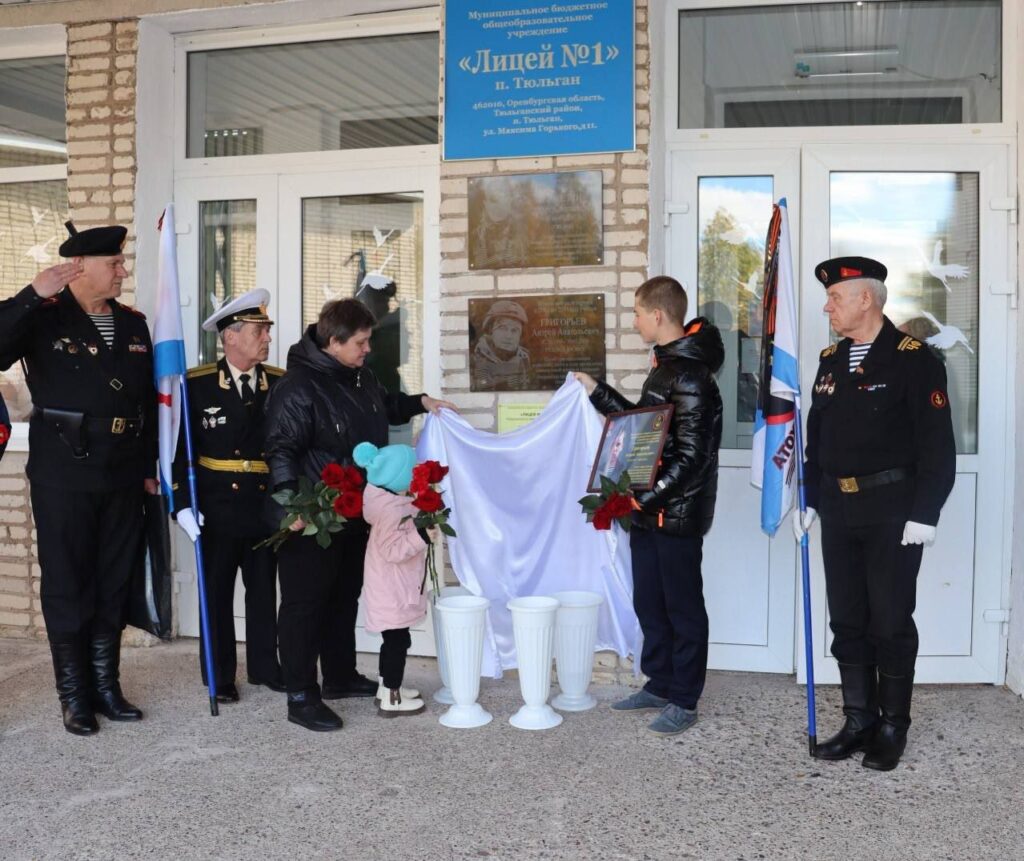 В лицее №1 посёлка Тюльган прошло торжественное открытие мемориальной доски в честь рядового Андрея Григорьева. Бойцу было 29 лет, он посмертно награждён орденом Мужества.