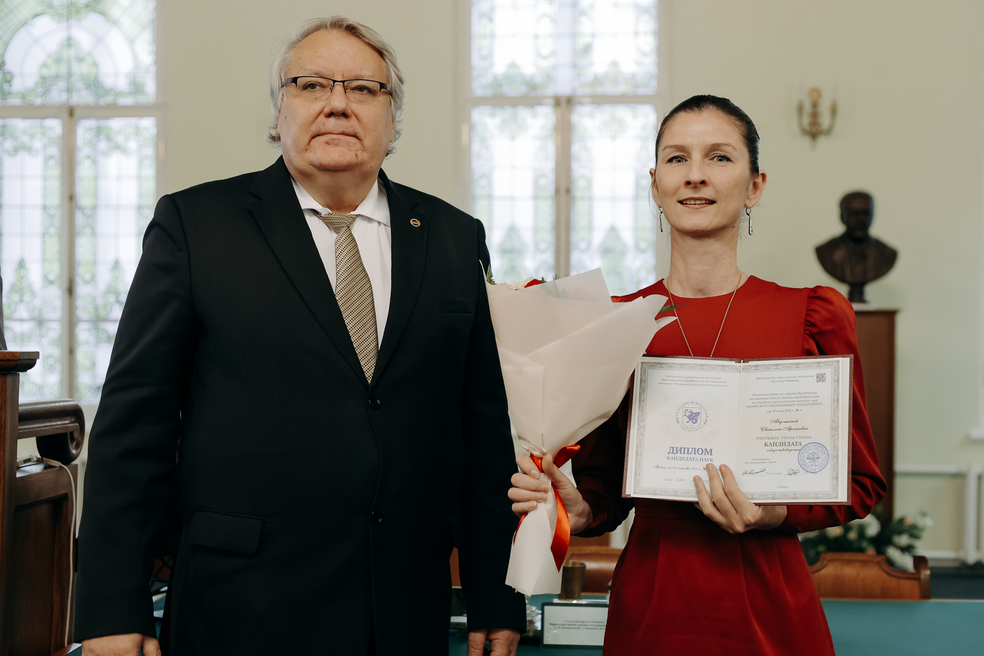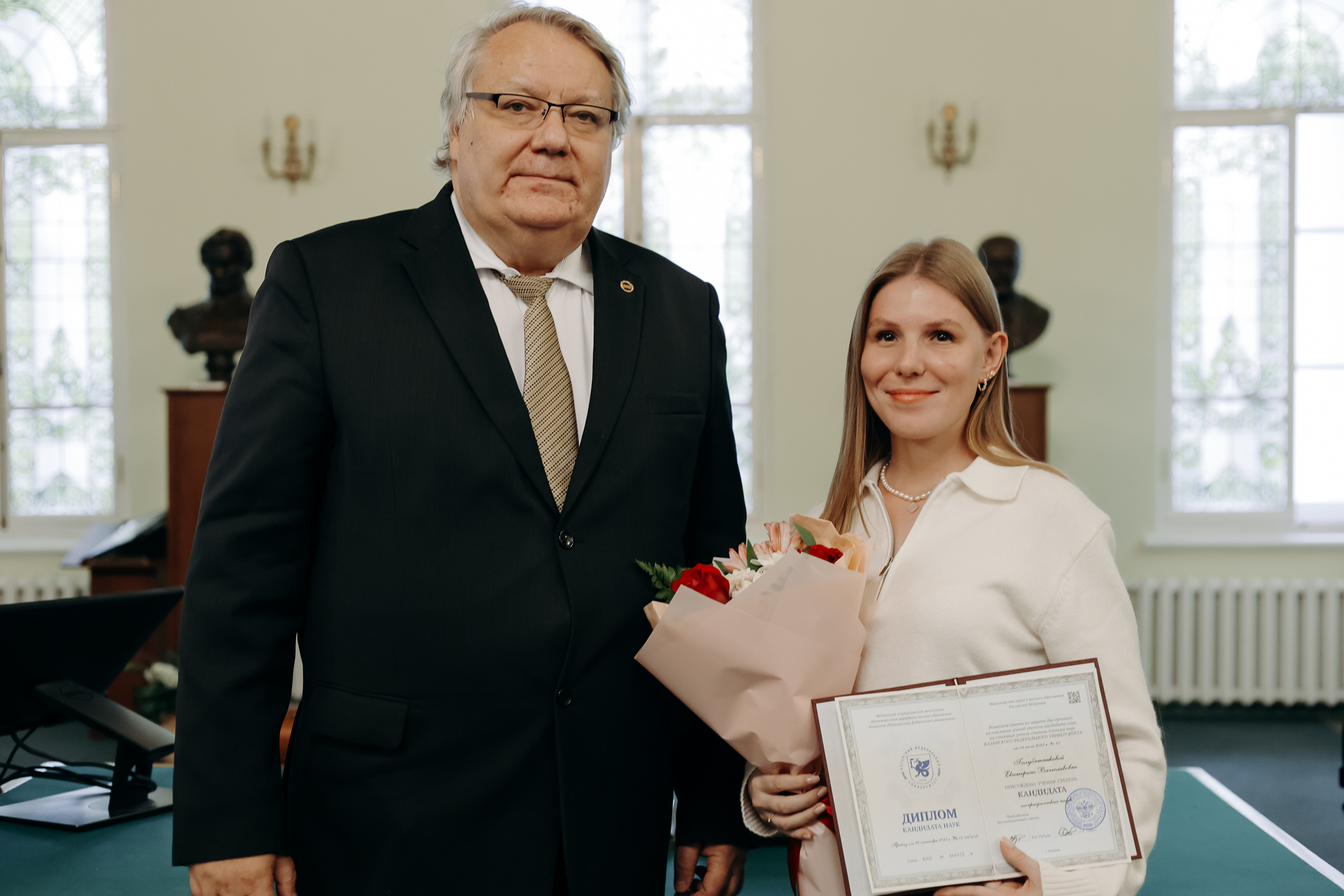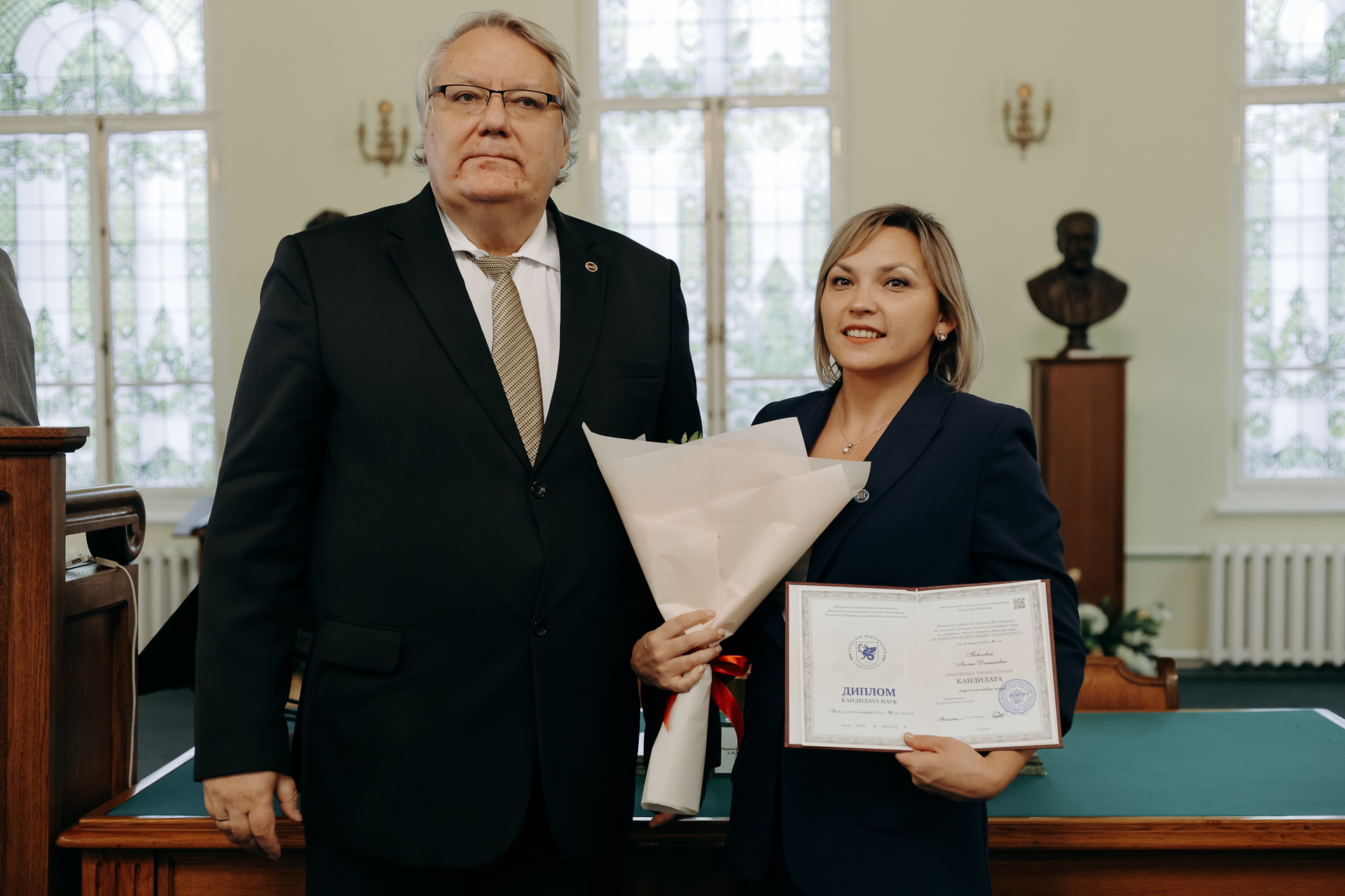 В Музее истории Казанского университета состоялось торжественное вручение дипломов кандидатам наук. Мероприятие стало важным событием в жизни вуза, подчеркнувшим преемственность научных традиций и признание заслуг молодых исследователей, успешно защитивших свои диссертации.