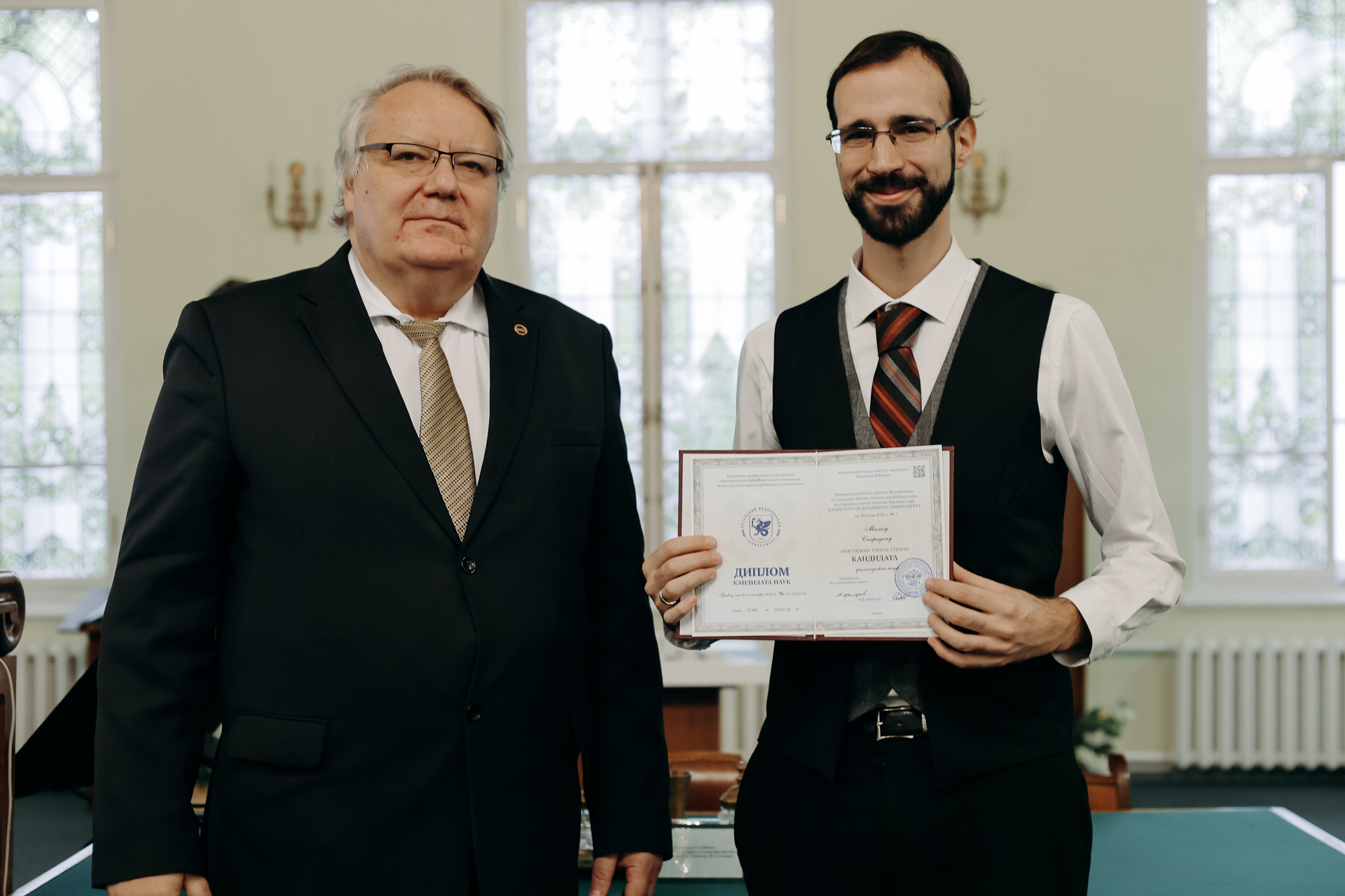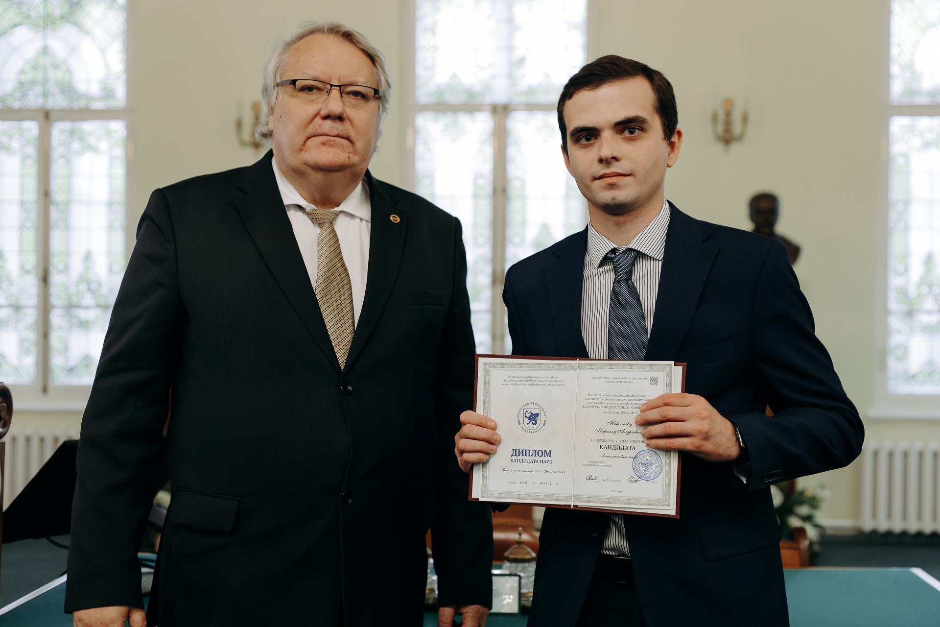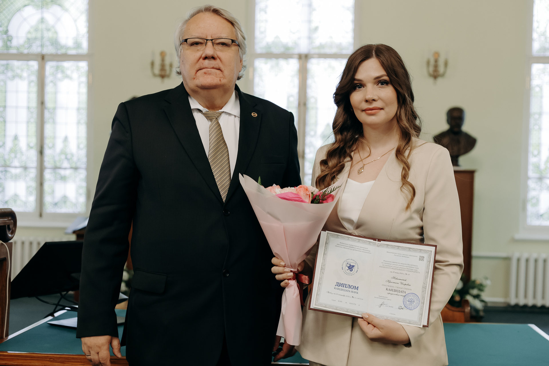 В Музее истории Казанского университета состоялось торжественное вручение дипломов кандидатам наук. Мероприятие стало важным событием в жизни вуза, подчеркнувшим преемственность научных традиций и признание заслуг молодых исследователей, успешно защитивших свои диссертации.
