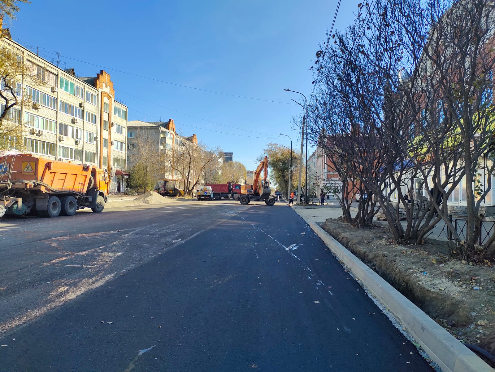 Как сообщал Порт Амур, работы на Амурской идут по нацпроекту «Инфраструктура для жизни». Завершить их планируют к 30 октября. К ремонту участка проезжей части одной из самых оживленных магистралей города подрядная организация приступила в конце сентября. Здесь демонтировали старый асфальт, установили дорожный бордюр, затем началось асфальтирование.