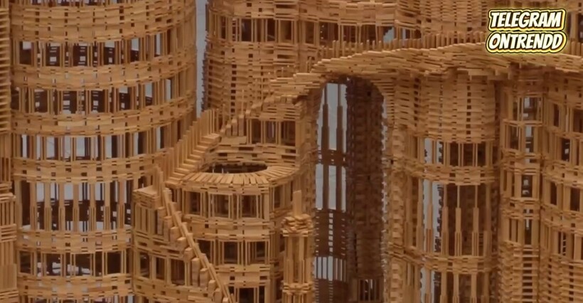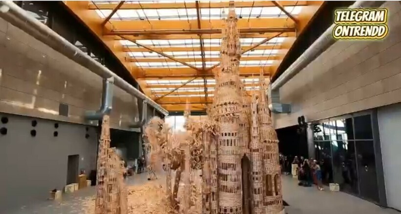 Команда из восьми человек, включая самих художников, установила 240 тысяч деревянных деталей, превратив их в башни со сложными фасадами и куполами, украшенными орнаментами. Каждый элемент требовал предельной концентрации: малейшая ошибка могла привести к преждевременному обрушению всей конструкции.
