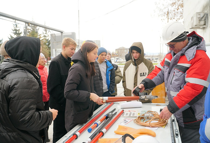 На другой площадке посетителей предприятия встретили энергетики с презентацией живой электрической цепи. Они с готовностью ответили на вопросы старшеклассников и рассказали об основных правилах электробезопасности. Здесь можно было примерить спецодежду, изучить приборы и приспособления, используемые представителями профессии в повседневной работе.