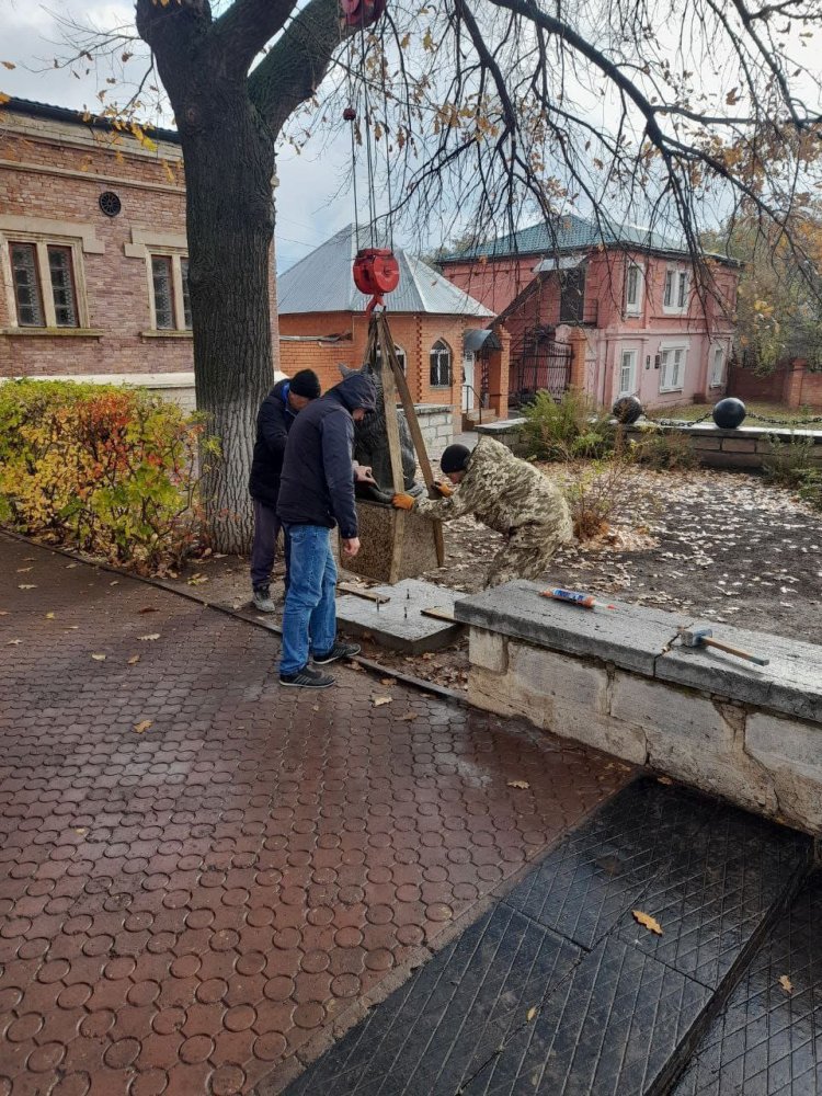 «Кота учёного» вернули на улицу в Оренбурге: теперь он обитает возле Музея истории.